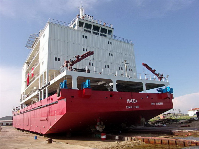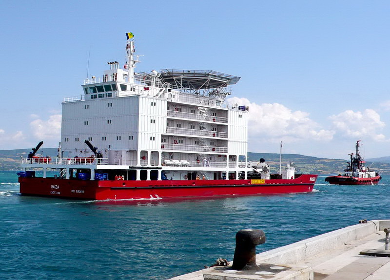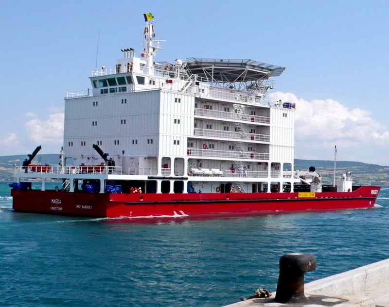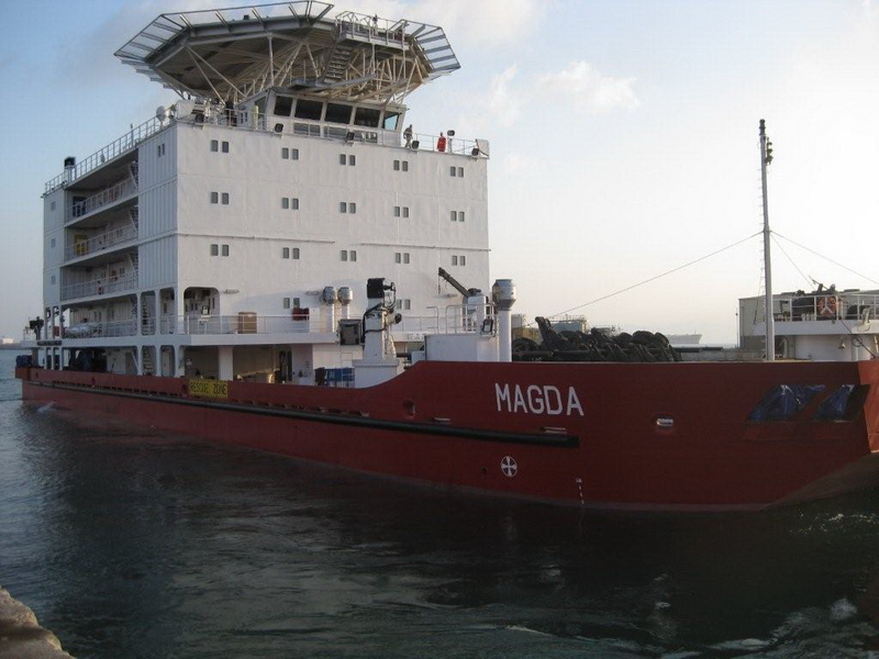 Il pontone MAGDA (Accomodation Barge-Hotel Barge) viene costruito preso il cantiere Gelibolu Shipyard S.A., Gelibolu, Turchia , con il numero di costruzione 042. È provvisto di propulsore proprio. È la terza costruzione di una serie di 3 unità (le prime due sono ELISA e RIO DEL REY). Il taglio delle prime lamiere avviene il 26-06-2008 ed il varo viene effettuato il 06-06-2009. La supervisione della costruzione avviene tramite esperti della ABC Maritime. Il pontone viene battezzato MAGDA, ed il 30-07-2009 messo sotto bandiera di St.VinBcent and The Grenadines (IMO nr.: 9480693, numero matricola: 10632, nominative internazionale: J8B4159). Il supporto commerciale e tecnico lo svolge la ABC Maritime, Nyon. Il 10-08-2009, il pontone parte dal cantiere, da dove intraprende il viaggio per Douala, Kamerun. Sosta per breve tempo a Gibilterra. Le dimensioni sono le seguenti: Lunghezza: 70 m, larghezza 20 m, altezza 4,3 m, pescaggio a pieno carico 2,3 m. Disloca 2162 tonn., e la portata è di 866 tonn. Una piattaforma per elicotteri ed alloggi più grandi distinguono il pontone dall’altro pontone nominato ELISA. Equippaggiato con un propulsore Diesel-Ellettrico, il quale aziona 2 eliche azimutali, installate a poppa (eliche orientabili, rendono superfluo il sistema di governo tradizionale, macchina del timone e timone), costruite dalla Schottel, Germania, con una Potenza di 525 kW ciascuna. Un’elica di manovra da 270 kW supporta le manovre. Quattro generatori Diesel, costruiti dalla Moteurs Bauduoin, Marsiglia, tipo M26SR, producono la necessaria alimentazione ellettrica (A.C. 3 fasi, 400/230V,50Hz) per i motori di propulsione ed i servizi ausiliari come anche per gli impianti necessari del servizio alberghiero. Ogni gruppo ha una capacità di 571kW. Il pontone è provvisto di un sistema di ancoraggio “8-point mooring”, cioè, sono installate 2 ancore Flipper-Delta, accoppiate ad un cavo d’acciao da 38mm, a prua ed a poppa, a dritta e sinistra. I cavi hanno una lunghezza di 1600m ed un peso di 9 tonn. Una gru da 10 tonn. è installata a dritta sul ponte di lavoro. Gli alloggi sono predisposti per 132 persone, incluso l’equipaggio (Marine Crew) ed il personale alberghiero. Il personale per il reparto marittimo (Marine Crew) è composto da 12 persone, a secondo le esigenze a bordo. Il 14-09-2009, dopo l’arrivo a Douala ed una breve rimanenza nel porto per i preparative per la messa in servizio, il pontone perte verso i pozzi petroliferi antistante la costa del Kamerun, dove poi svolge il suo servizio. Il pontone MAGDA (Accomodation Barge-Hotel Barge) viene costruito preso il cantiere Gelibolu Shipyard S.A., Gelibolu, Turchia , con il numero di costruzione 042. È provvisto di propulsore proprio. È la terza costruzione di una serie di 3 unità (le prime due sono ELISA e RIO DEL REY). Il taglio delle prime lamiere avviene il 26-06-2008 ed il varo viene effettuato il 06-06-2009. La supervisione della costruzione avviene tramite esperti della ABC Maritime. Il pontone viene battezzato MAGDA, ed il 30-07-2009 messo sotto bandiera di St.VinBcent and The Grenadines (IMO nr.: 9480693, numero matricola: 10632, nominative internazionale: J8B4159). Il supporto commerciale e tecnico lo svolge la ABC Maritime, Nyon. Il 10-08-2009, il pontone parte dal cantiere, da dove intraprende il viaggio per Douala, Kamerun. Sosta per breve tempo a Gibilterra. Le dimensioni sono le seguenti: Lunghezza: 70 m, larghezza 20 m, altezza 4,3 m, pescaggio a pieno carico 2,3 m. Disloca 2162 tonn., e la portata è di 866 tonn. Una piattaforma per elicotteri ed alloggi più grandi distinguono il pontone dall’altro pontone nominato ELISA. Equippaggiato con un propulsore Diesel-Ellettrico, il quale aziona 2 eliche azimutali, installate a poppa (eliche orientabili, rendono superfluo il sistema di governo tradizionale, macchina del timone e timone), costruite dalla Schottel, Germania, con una Potenza di 525 kW ciascuna. Un’elica di manovra da 270 kW supporta le manovre. Quattro generatori Diesel, costruiti dalla Moteurs Bauduoin, Marsiglia, tipo M26SR, producono la necessaria alimentazione ellettrica (A.C. 3 fasi, 400/230V,50Hz) per i motori di propulsione ed i servizi ausiliari come anche per gli impianti necessari del servizio alberghiero. Ogni gruppo ha una capacità di 571kW. Il pontone è provvisto di un sistema di ancoraggio “8-point mooring”, cioè, sono installate 2 ancore Flipper-Delta, accoppiate ad un cavo d’acciao da 38mm, a prua ed a poppa, a dritta e sinistra. I cavi hanno una lunghezza di 1600m ed un peso di 9 tonn. Una gru da 10 tonn. è installata a dritta sul ponte di lavoro. Gli alloggi sono predisposti per 132 persone, incluso l’equipaggio (Marine Crew) ed il personale alberghiero. Il personale per il reparto marittimo (Marine Crew) è composto da 12 persone, a secondo le esigenze a bordo. Il 14-09-2009, dopo l’arrivo a Douala ed una breve rimanenza nel porto per i preparative per la messa in servizio, il pontone perte verso i pozzi petroliferi antistante la costa del Kamerun, dove poi svolge il suo servizio. Il 13-08-2020 messa sotto bandiera delle Isole Marshall. Nominativo internazionale: V7A4267, MMSI: 538009066. Il 11-09-2025 passa alla Dermor Inc. Co, Kingstown – St Vincent and the Grenadines e rinominata SIRONA. Nominativo internazionale: J8B6652, MMSI: 37588000. La gestione commerciale e tecnica ora la svolge la Dixstone Netherlands NV, Hoofdrop. Fonti: