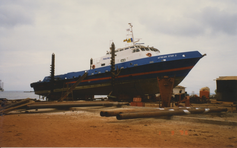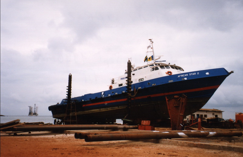 Auf dem Slipway von DPS, Delmas Petroleum Services, Port Gentil am 01.09.1996 / On the slipway of DPS, Delmas Petroleum Services, Port Gentil on 01.09.1996