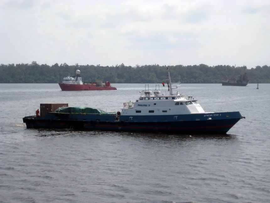In Pointe Noire, Repubik Kongo, vor der Boscongo Pier (Offshore Konstruktionsfirma) / In Pointe Noire, Republic of Congo, in front of Boscongo pier (offshore construction company)
