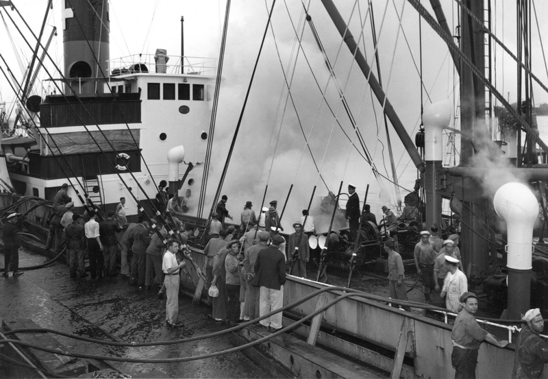 Feuer in der Copraladung am 21.08.1943 in Lissabon / Copra cargo fire at Lisbon on August 21, 1943