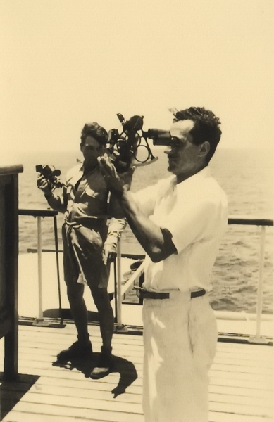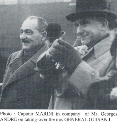 Kapitän Alessandro Marini (17.02.1906 - † Januar 1993) und Georges André bei der Schiffsübergabe