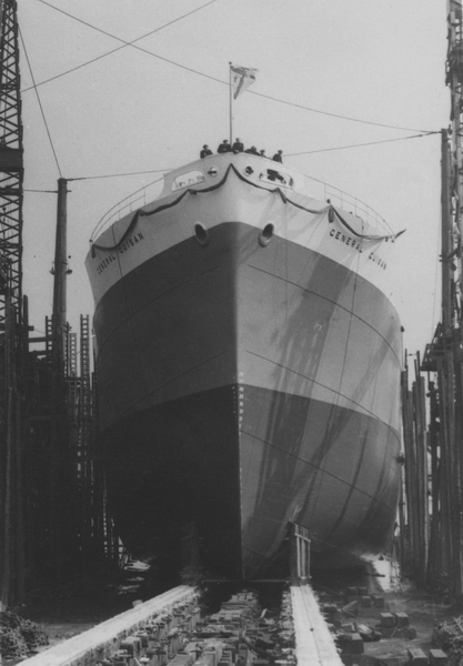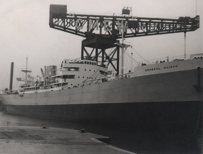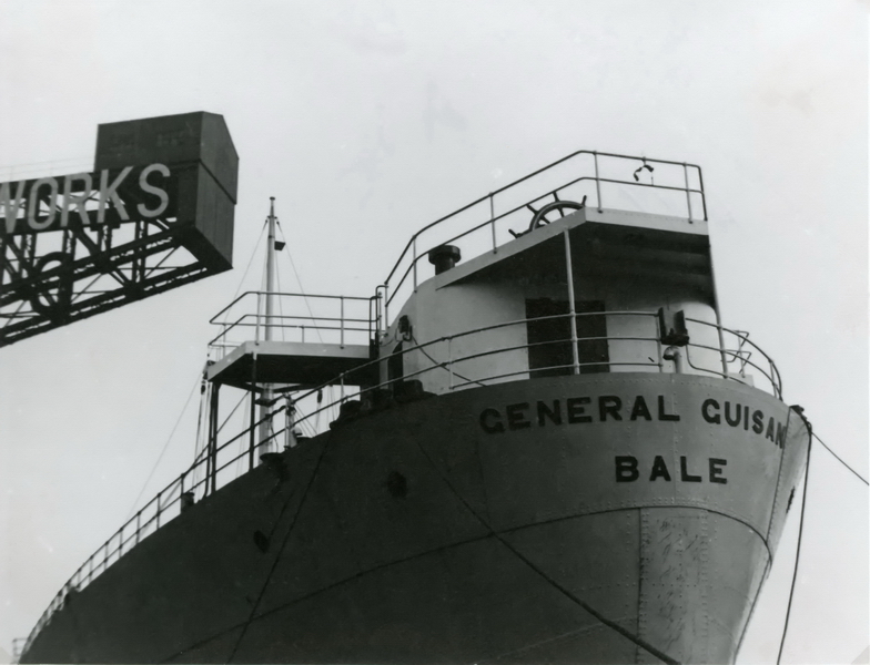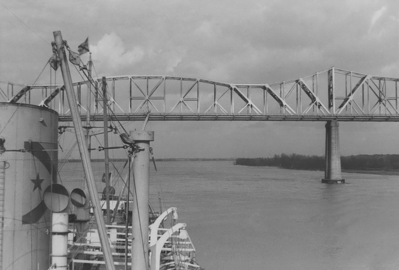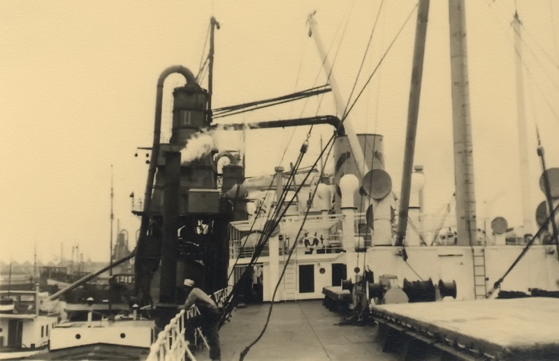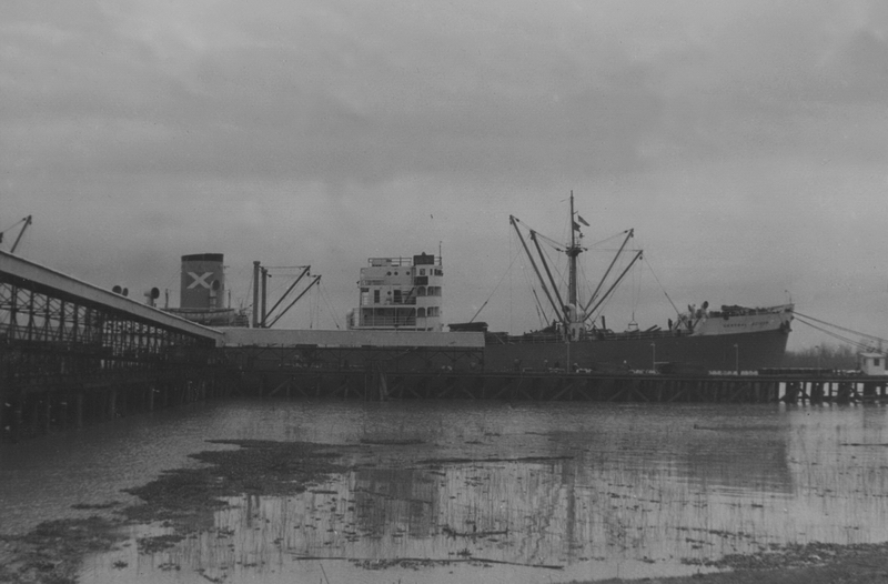 February 1949 at St. Rose Mississippi River USA loading 44,000 steel barrels with airplane fuel (Isbrandtsen Co. Inc. charter)