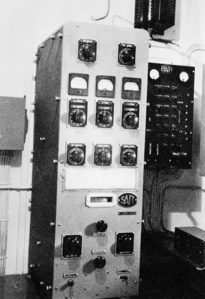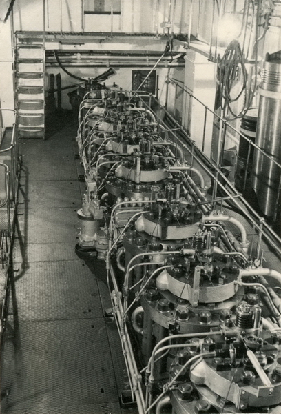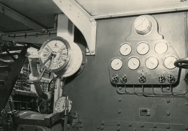 Blick auf den Maschinenfahrstand der Sulzer Hauptmaschine