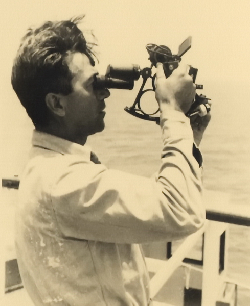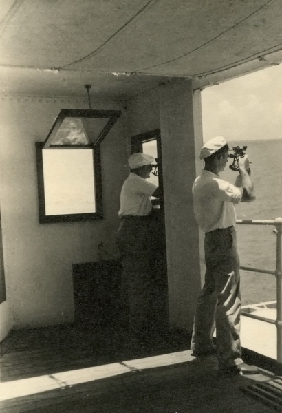 Das Schiff rollt stark. Offiziere beim Sonne schiessen