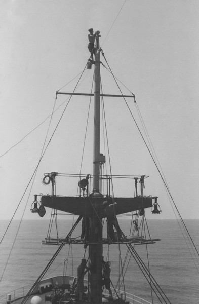 Peildeck mit Magnetkompass und Funkpeilantenne