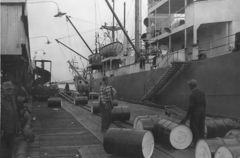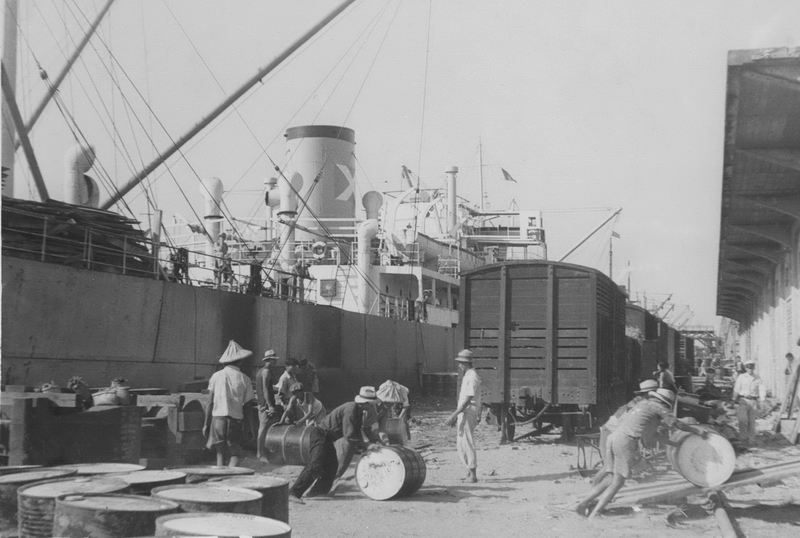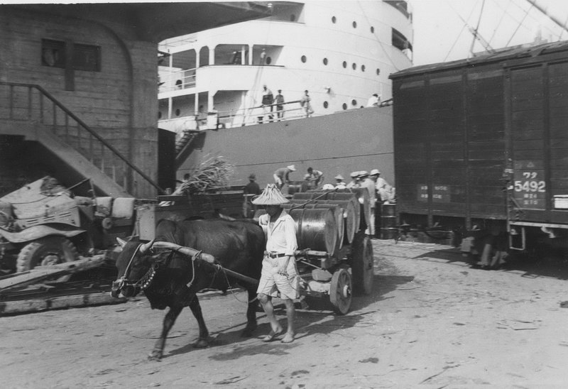 April 1949 at Takao (Kaohsiung) Formosa (Taiwan) discharging 44'000 drums of airplane fuel
