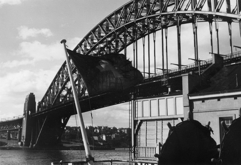 27.08.1950 Schweizer Flagge an der Pier bei Sydney Harbour Bridge