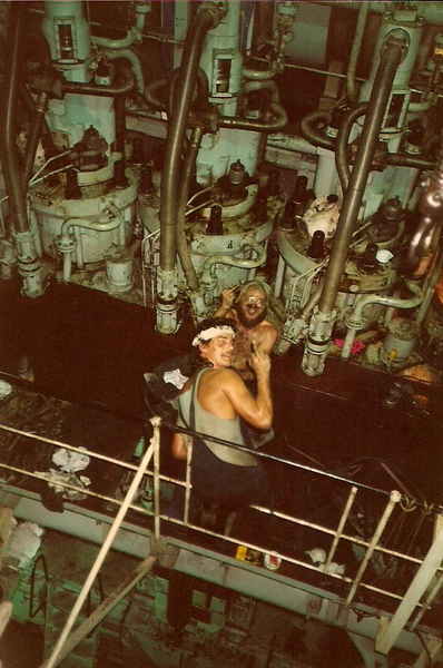 Maschinisten bei �berholungsarbeiten / Engine crew on maintenance work