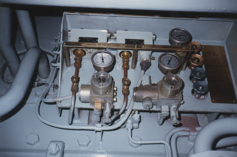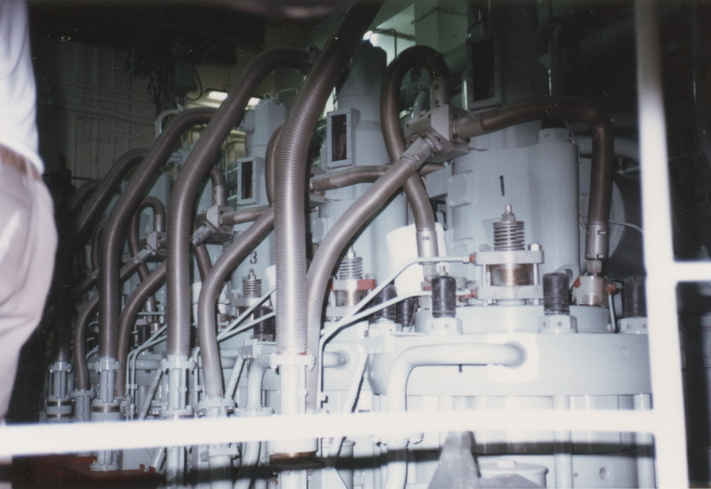 Main engine cylinder station, Sulzer 6RTA58, note the hydraulically controlled exhaust valves Bildherkunft / Photosource: Unbekannt / Unknown / SwissShips / Archiv