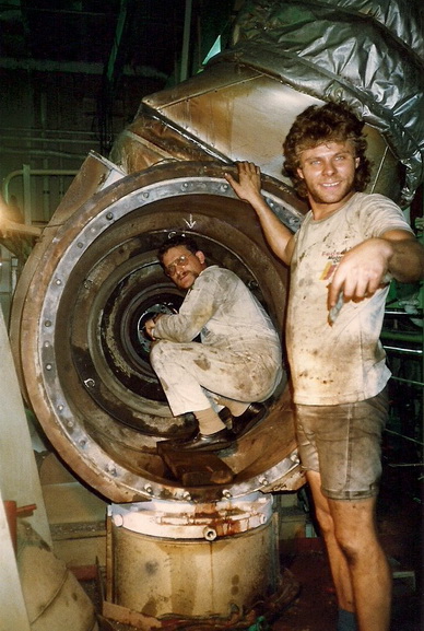 Inspektion eines HM-Turbolader Geh�uses mit Chief Engineer Senn & Assi Sidler