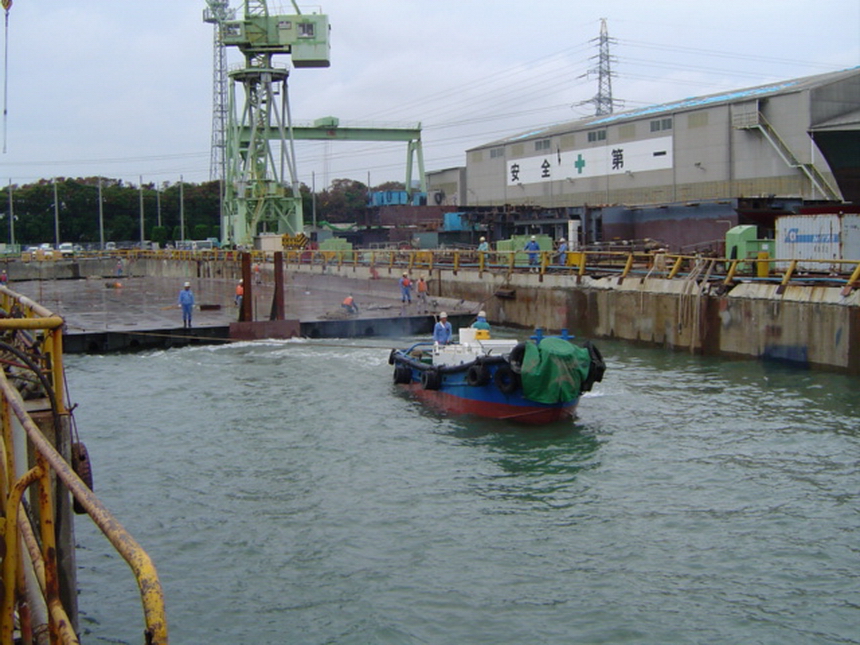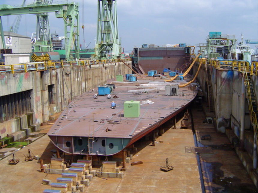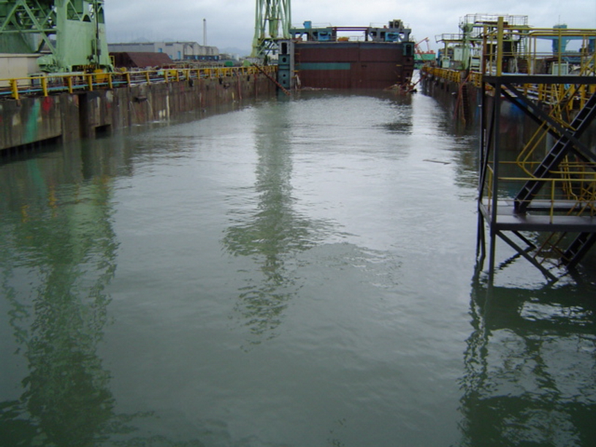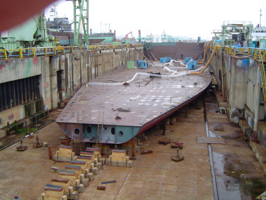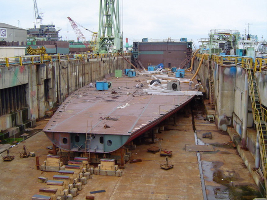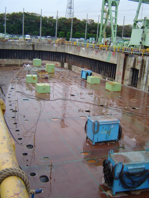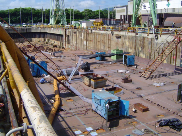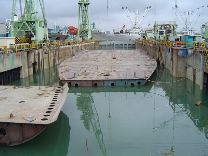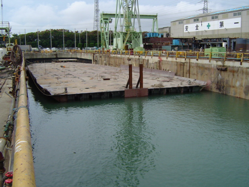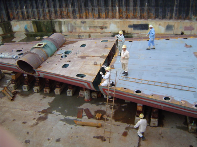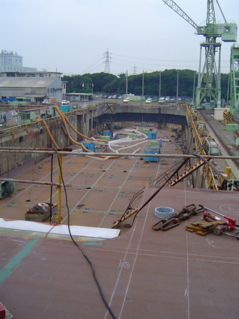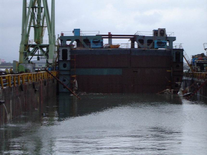 H 455 Typhoon No. 18 "Chaba" damage, prepairing Dock for floating in dp / H 455 Schadenfall durch Taifun Nr. 18 "Chaba" Status 19.09.2004 Dock vorbereitung für das erneute einschwimmen des Doppelbodens