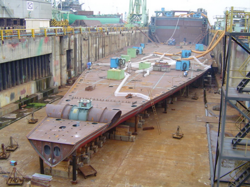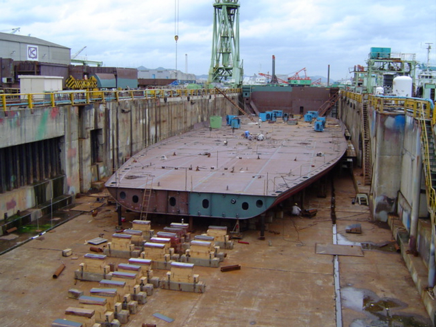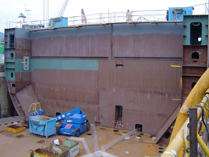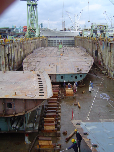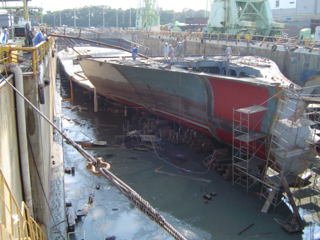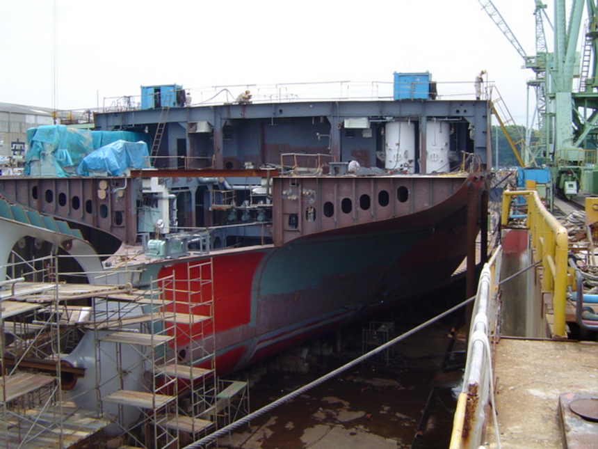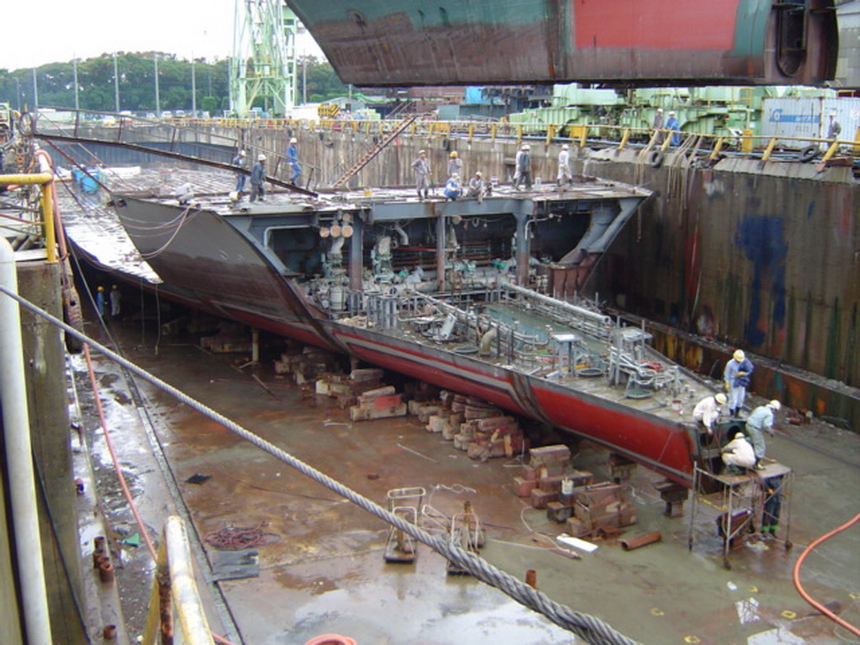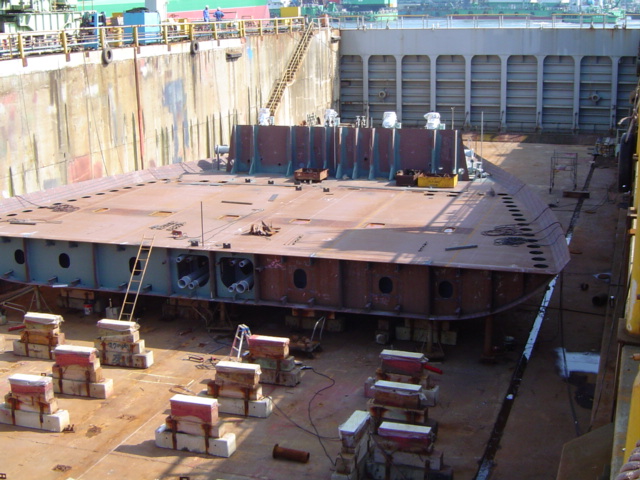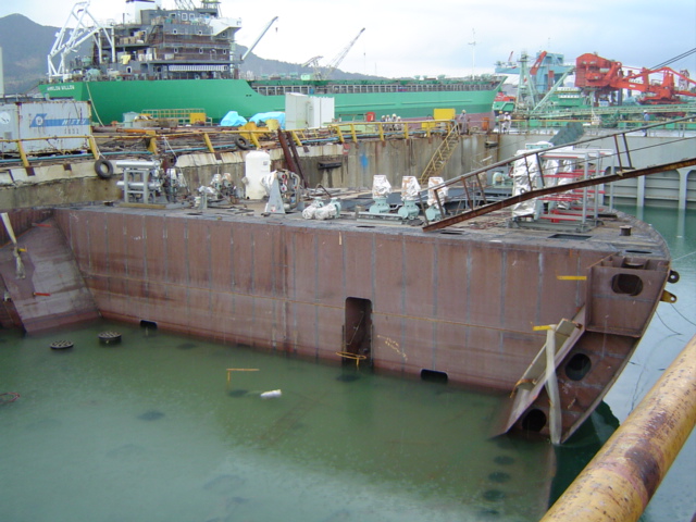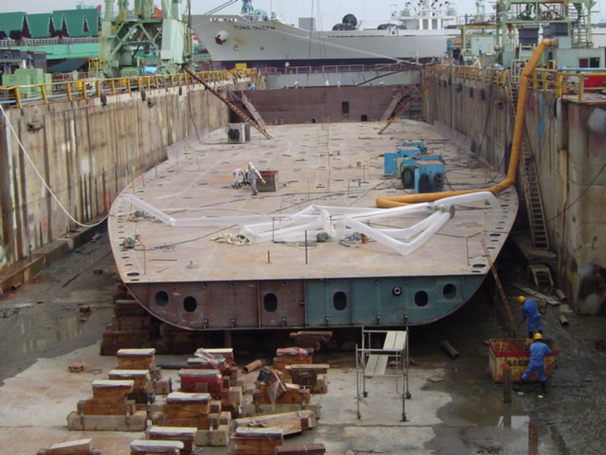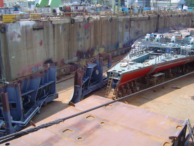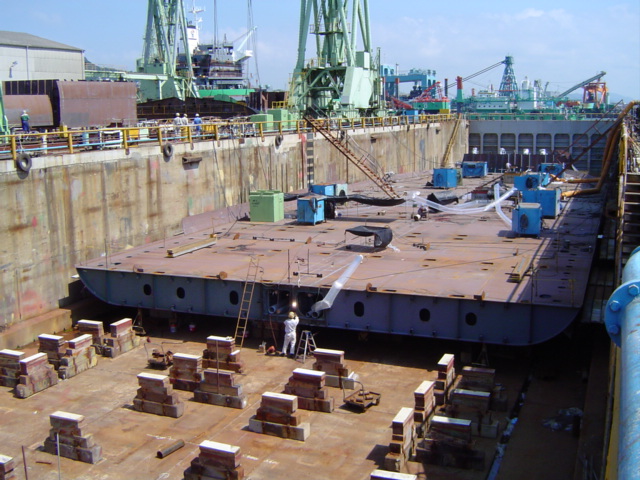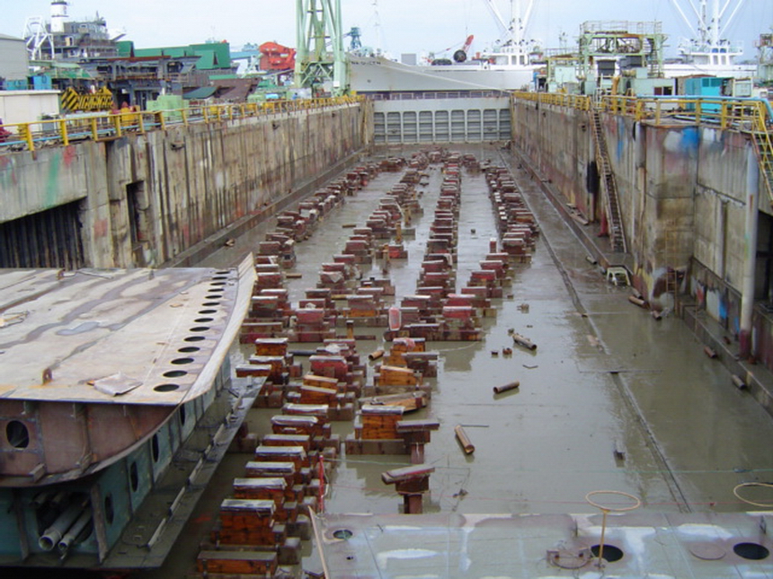 H 455 Typhoon No. 18 "Chaba" damage, prepairing Dock for floating in dp / H 455 Schadenfall durch Taifun Nr. 18 "Chaba" Status 19.09.2004 Dock vorbereitung für das erneute einschwimmen des Doppelbodens
