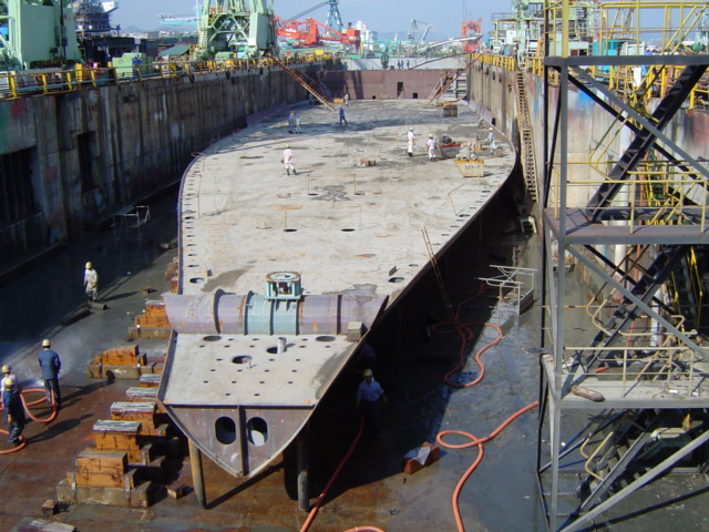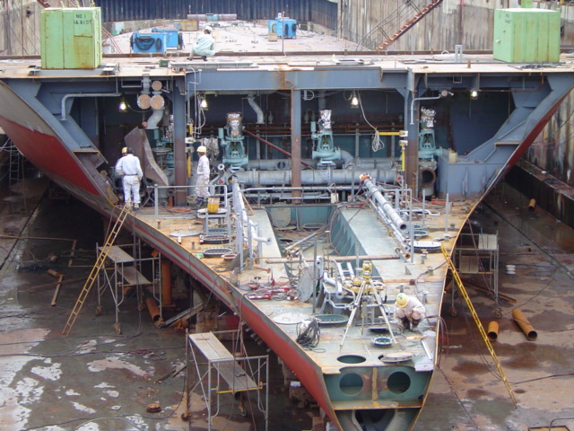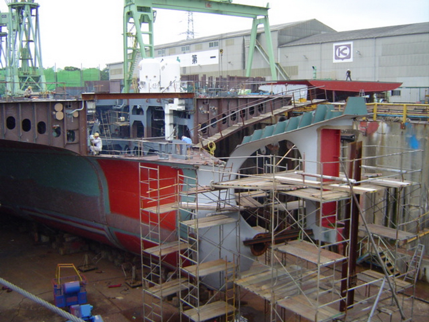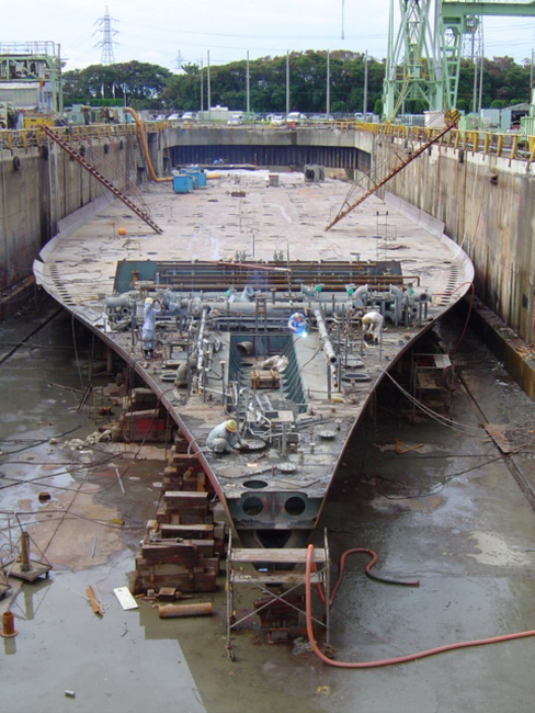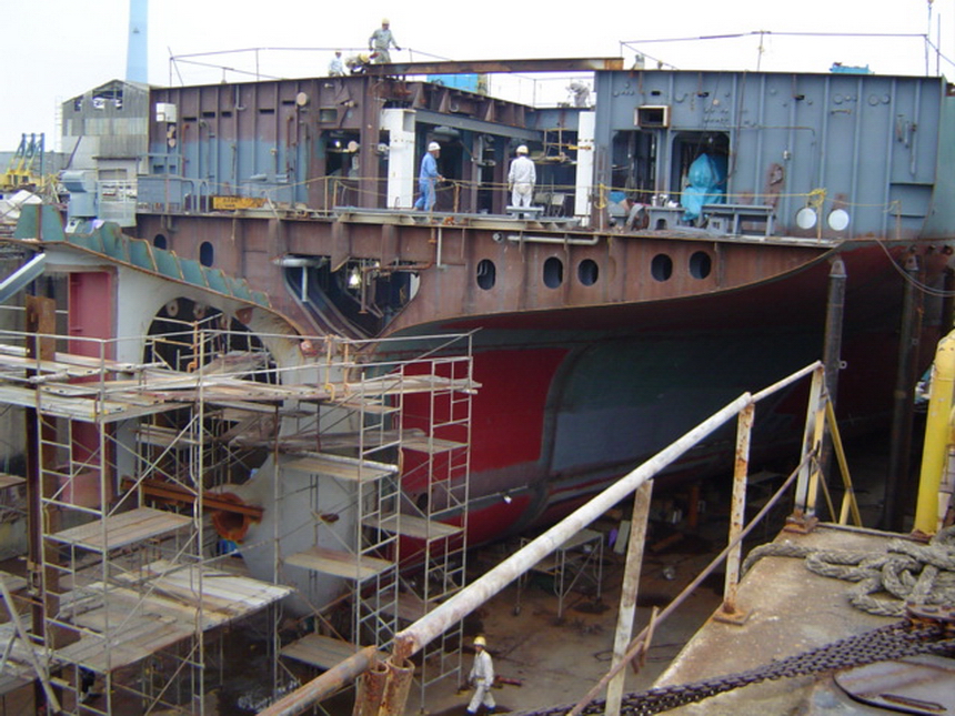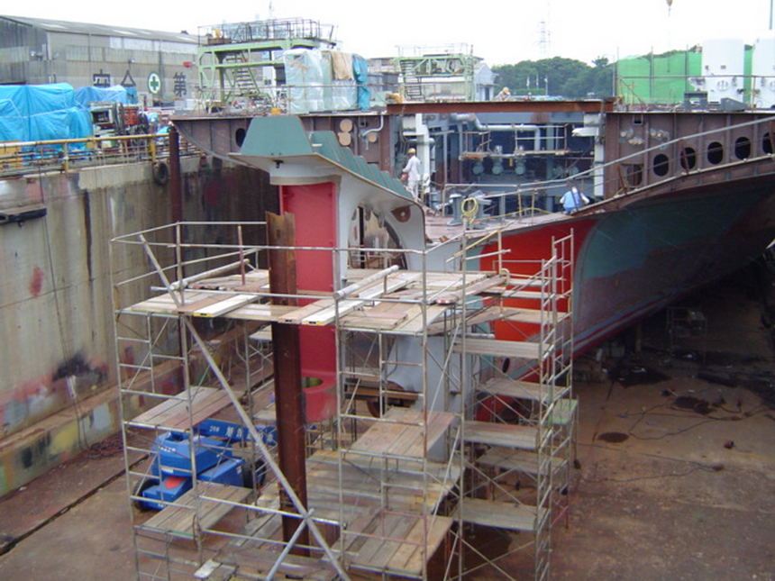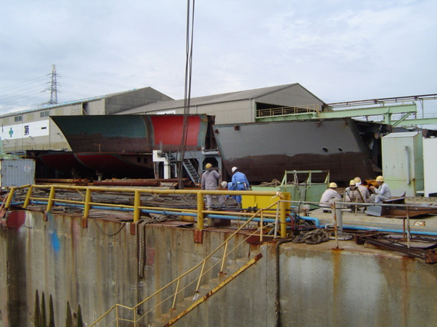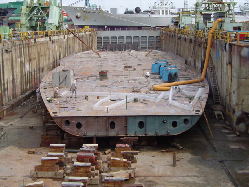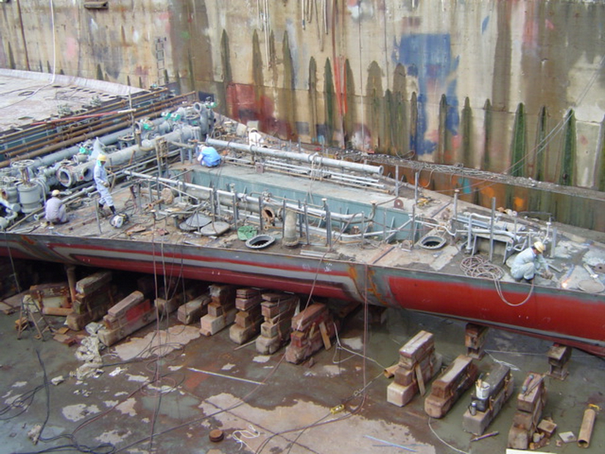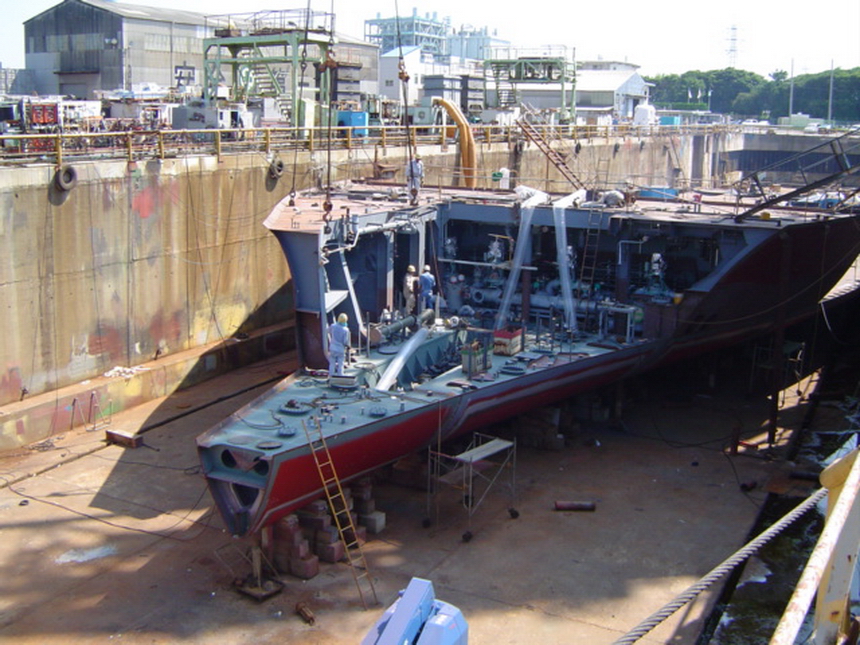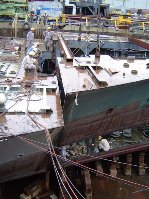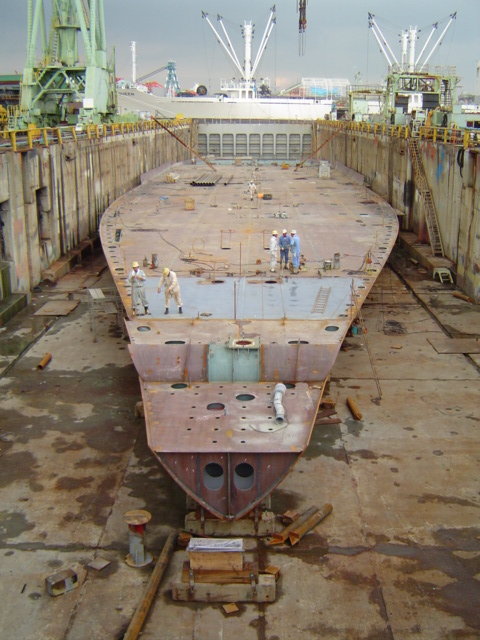 H 455 Typhoon No. 18 "Chaba" damage, prepairing Dock for floating in dp / H 455 Schadenfall durch Taifun Nr. 18 "Chaba" Status 19.09.2004 Dock vorbereitung für das erneute einschwimmen des Doppelbodens