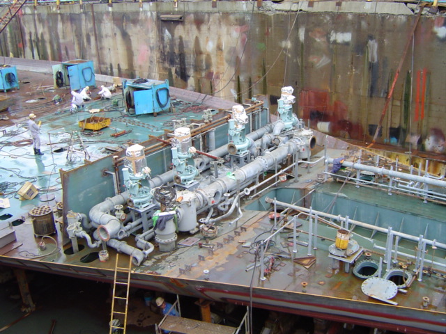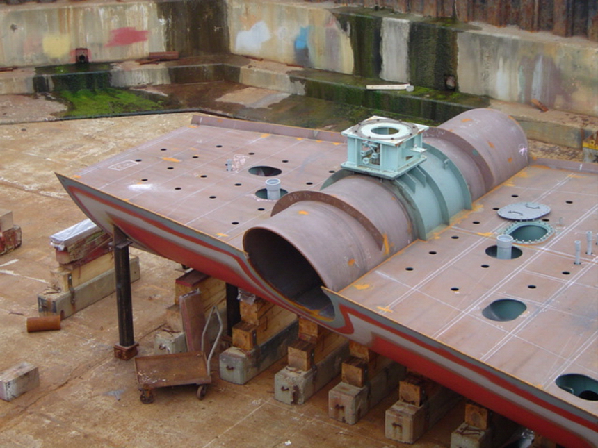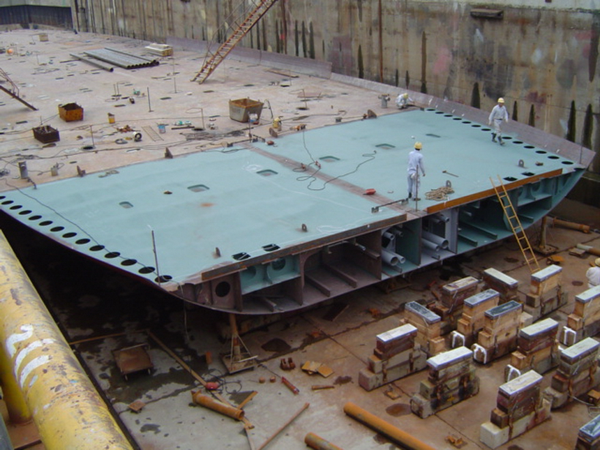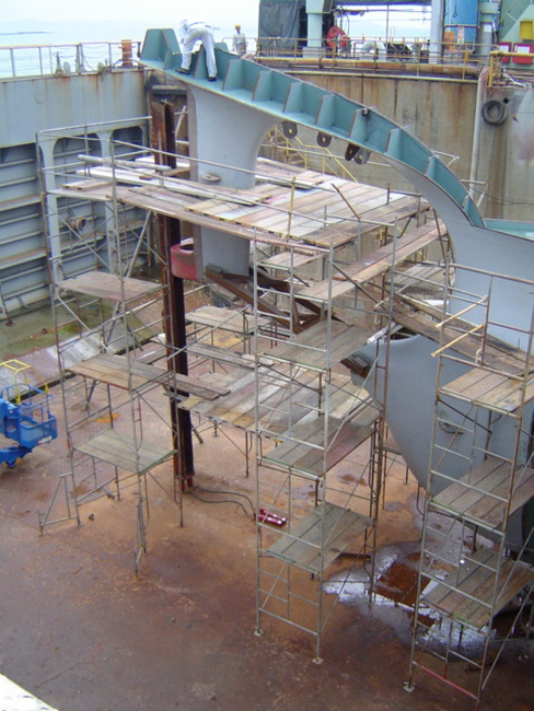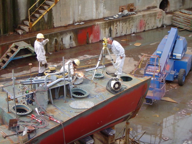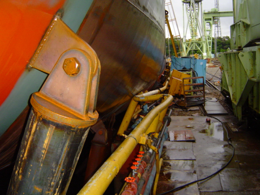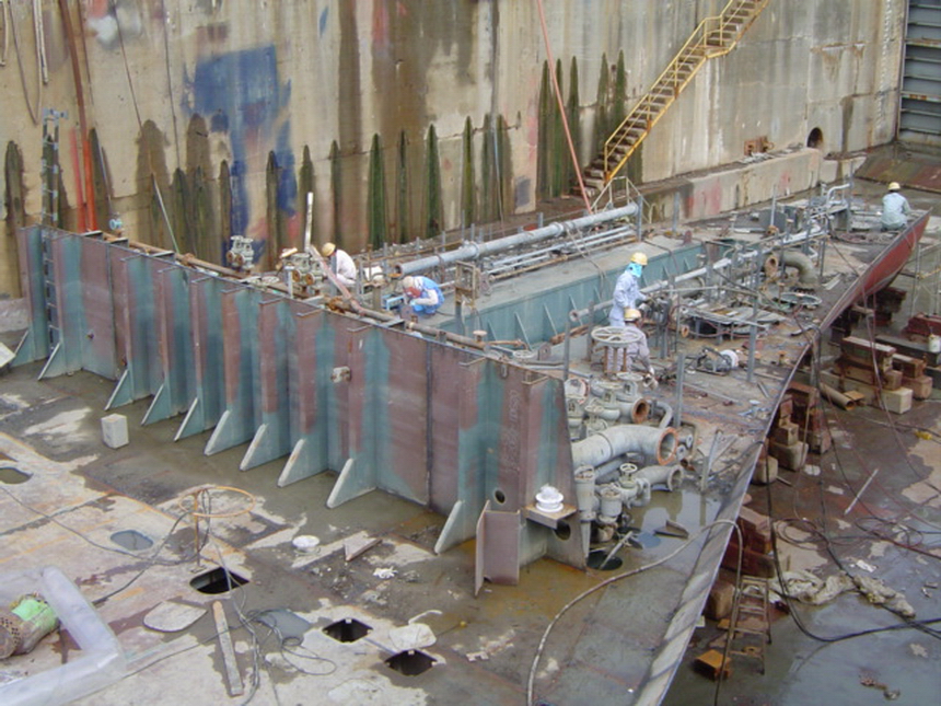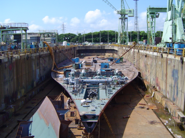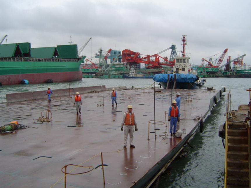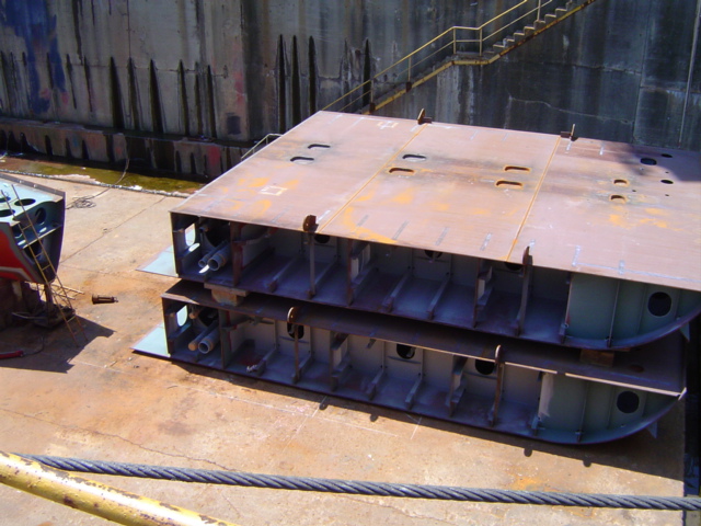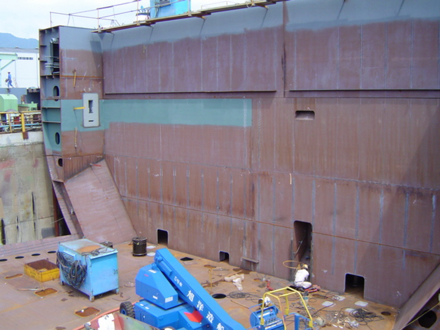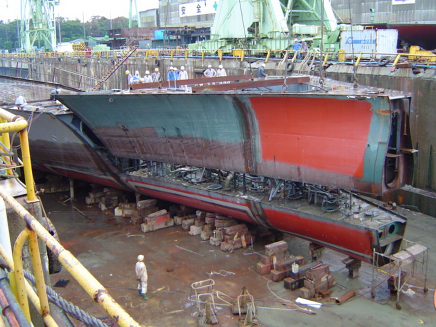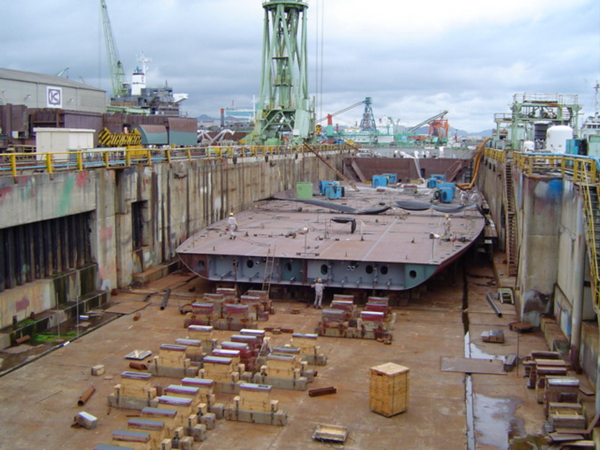H 455 Typhoon No. 18 "Chaba" damage, prepairing Dock for floating in dp / H 455 Schadenfall durch Taifun Nr. 18 "Chaba" Status 19.09.2004 Dock vorbereitung für das erneute einschwimmen des Doppelbodens