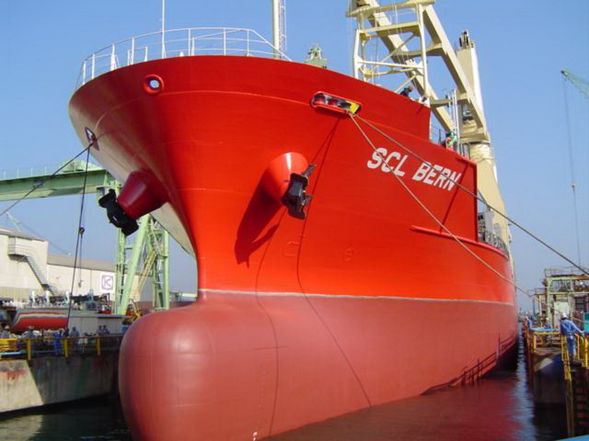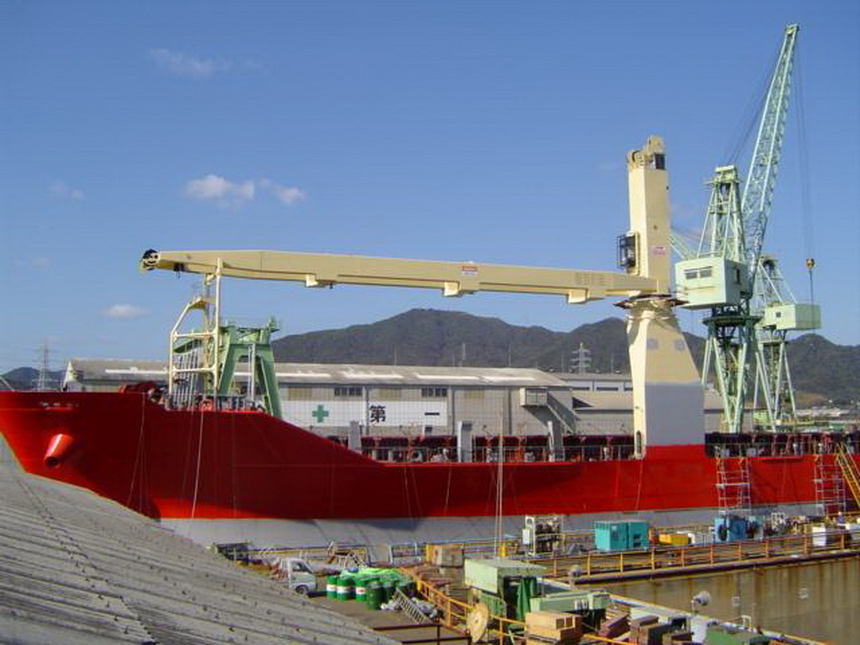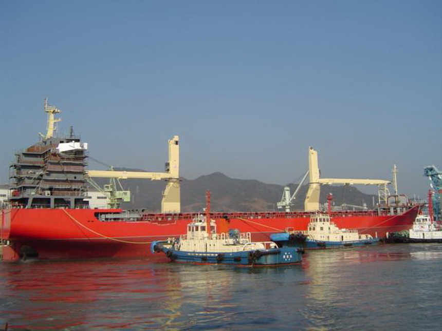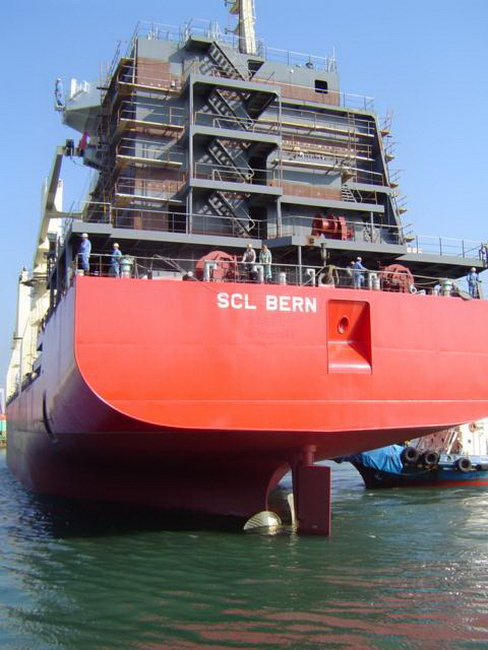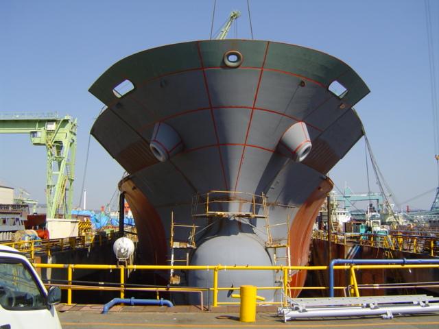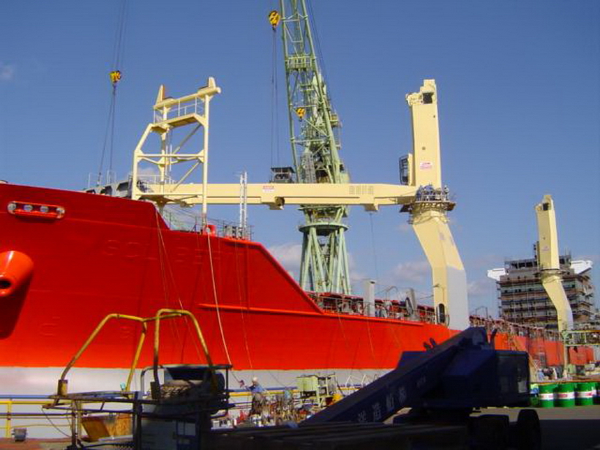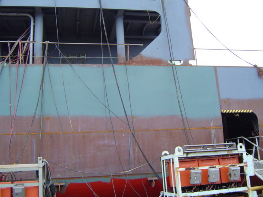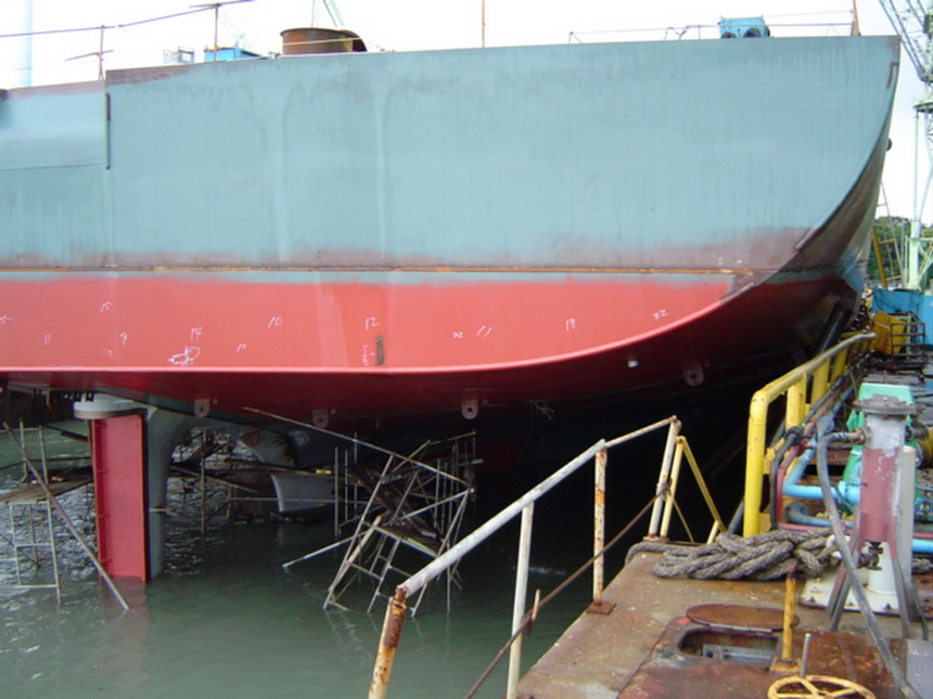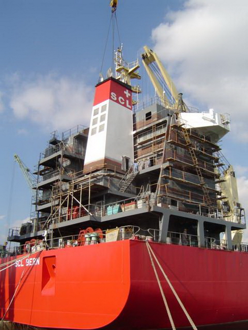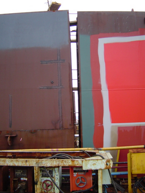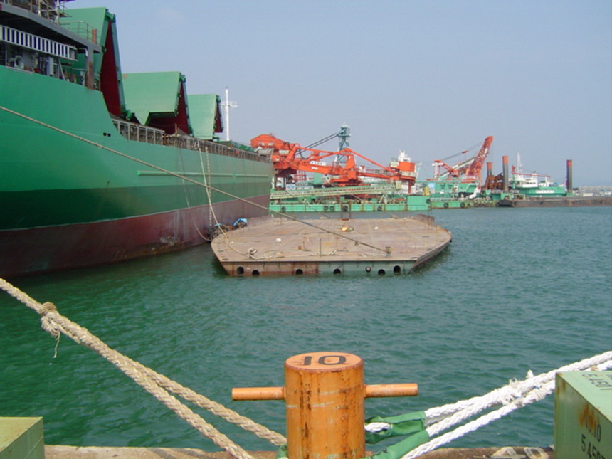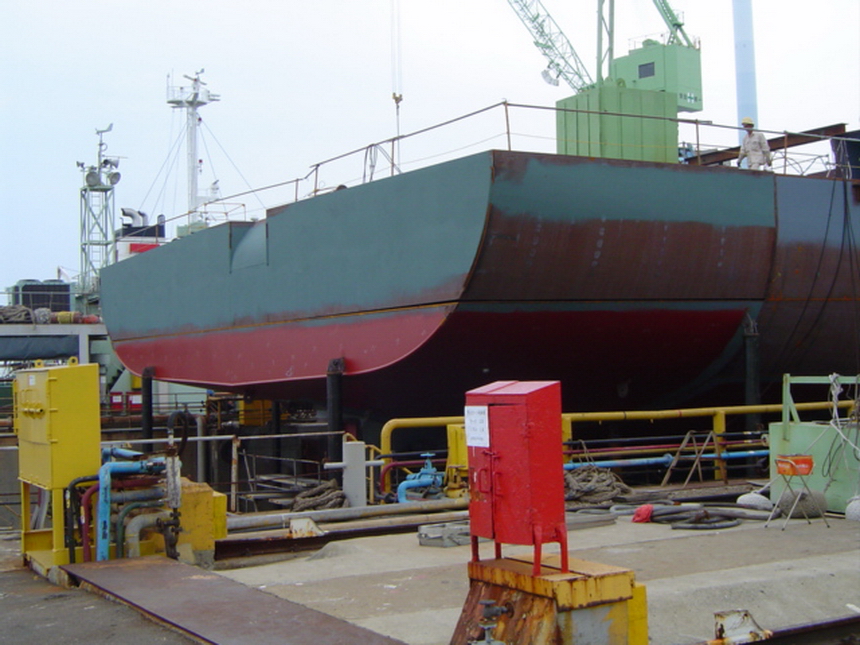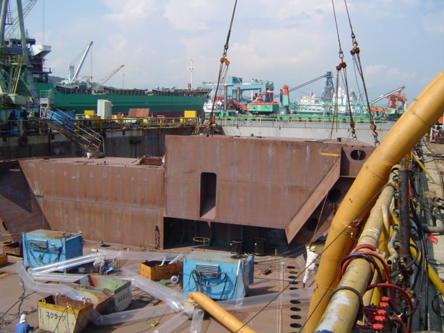 H 455 Typhoon No. 18 "Chaba" damage, dp moored on newbuilding / H 455 Schadenfall durch Taifun Nr. 18 "Chaba" Status 18.09.2004 Doppelboden verholt aus Dock und an einem Neubau festgemacht