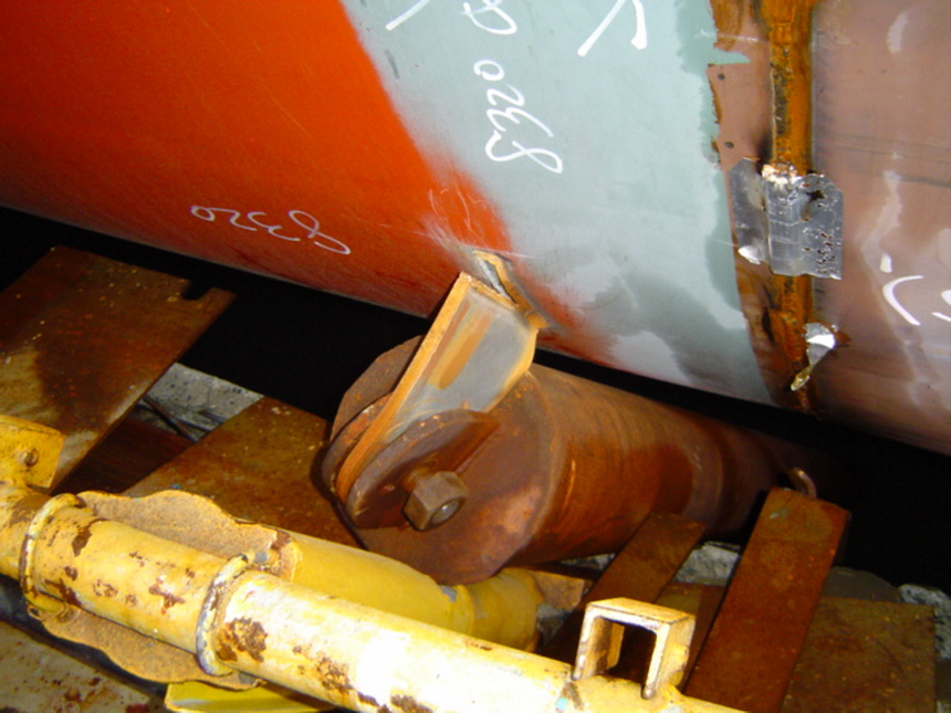 H 455 Typhoon No. 18 "Chaba" damage. Ballast weights placed / H 455 Schadenfall durch Taifun Nr. 18 "Chaba" Status 28.09.2004. Ballast Gewicht platziert