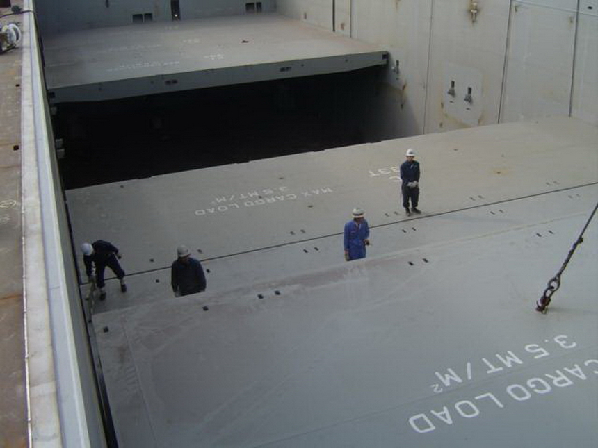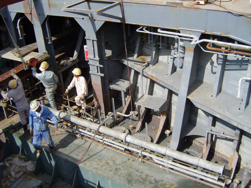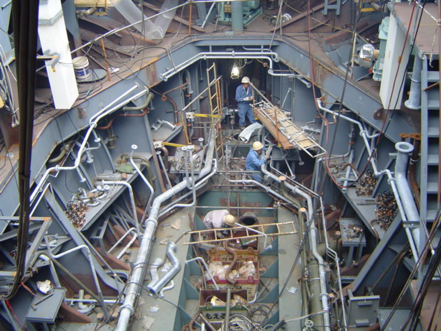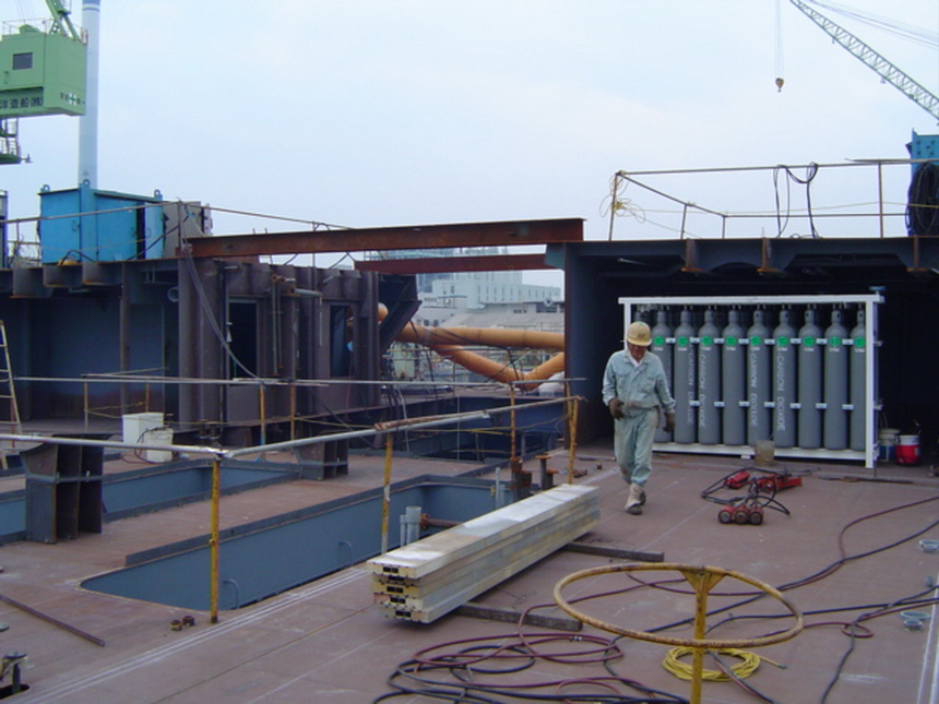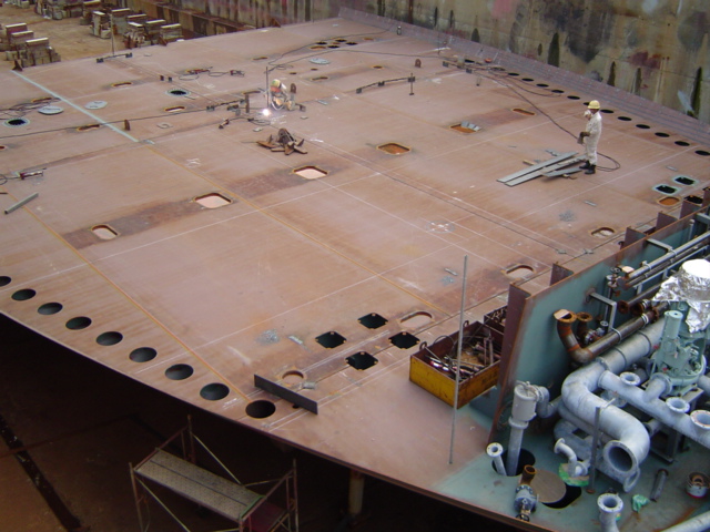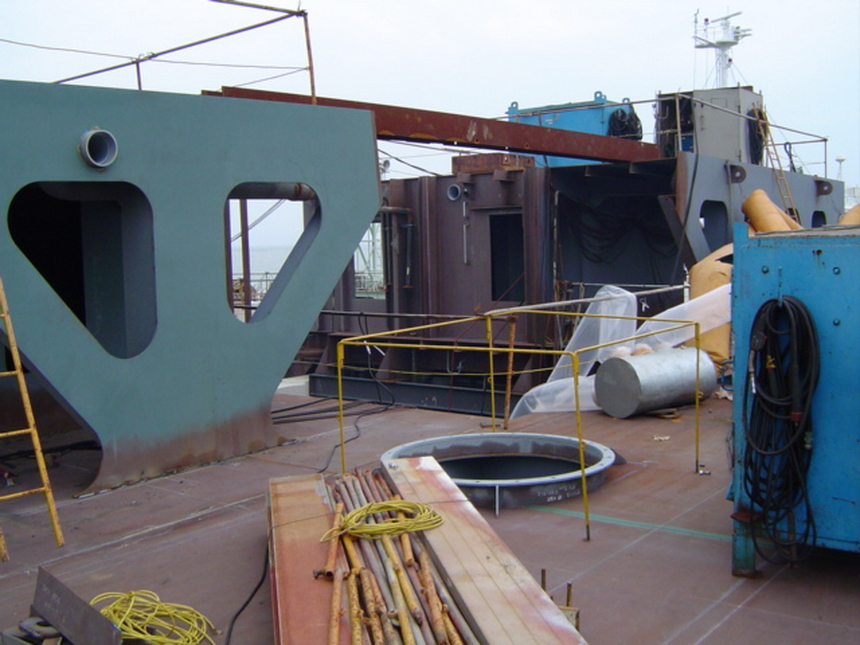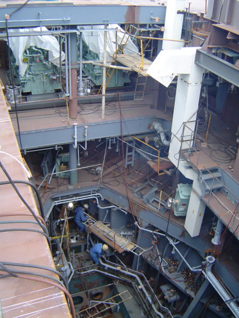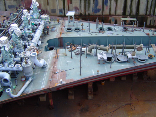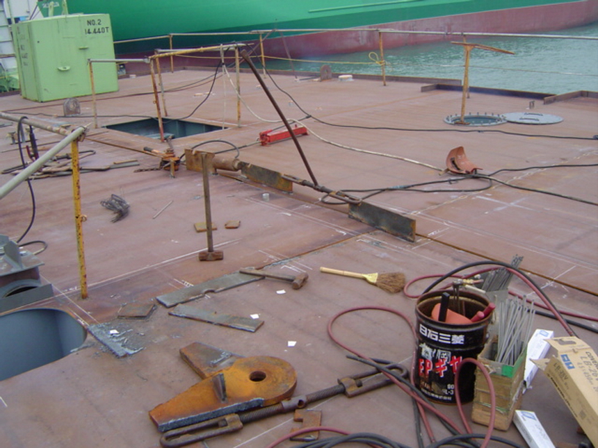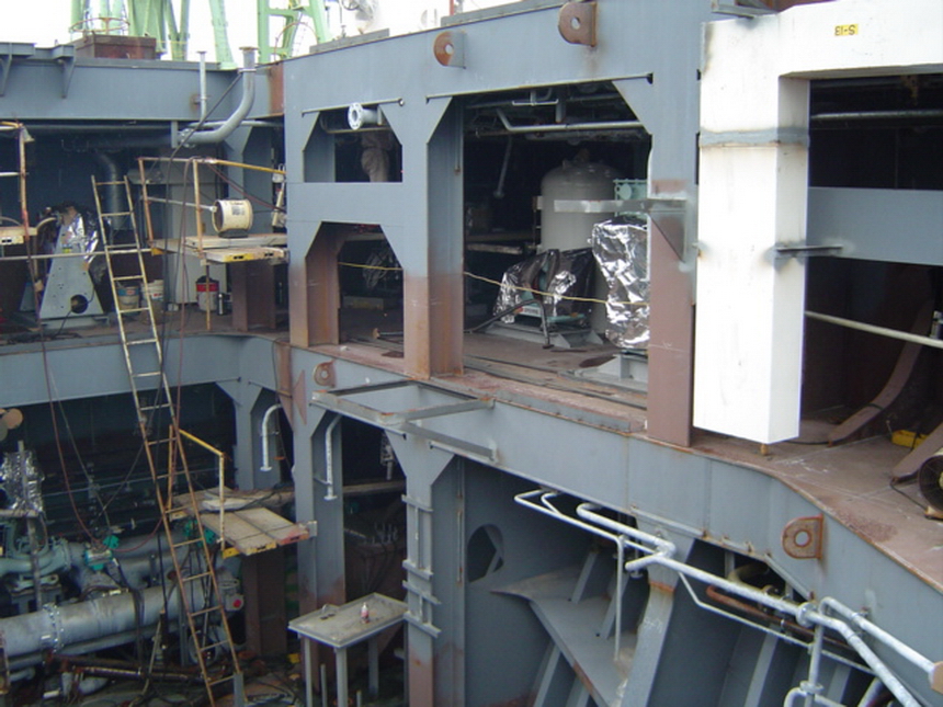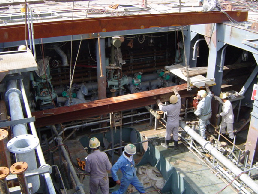 H 455 Typhoon No. 18 "Chaba" damage, dp 14 & 15 re-install / H 455 Schadenfall durch Taifun Nr. 18 "Chaba" Status 22.09.2004. Doppelboden 14 & 15 neu installieren