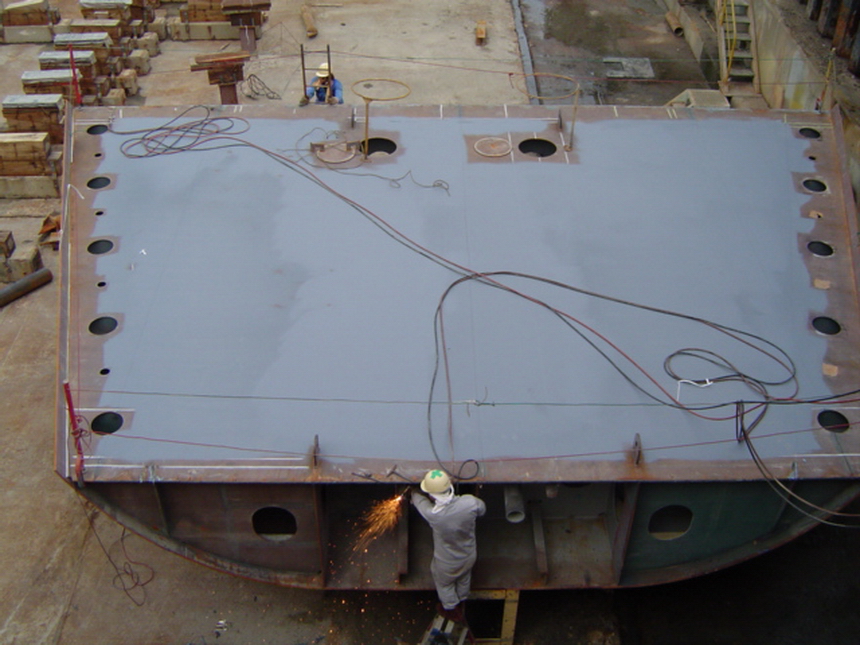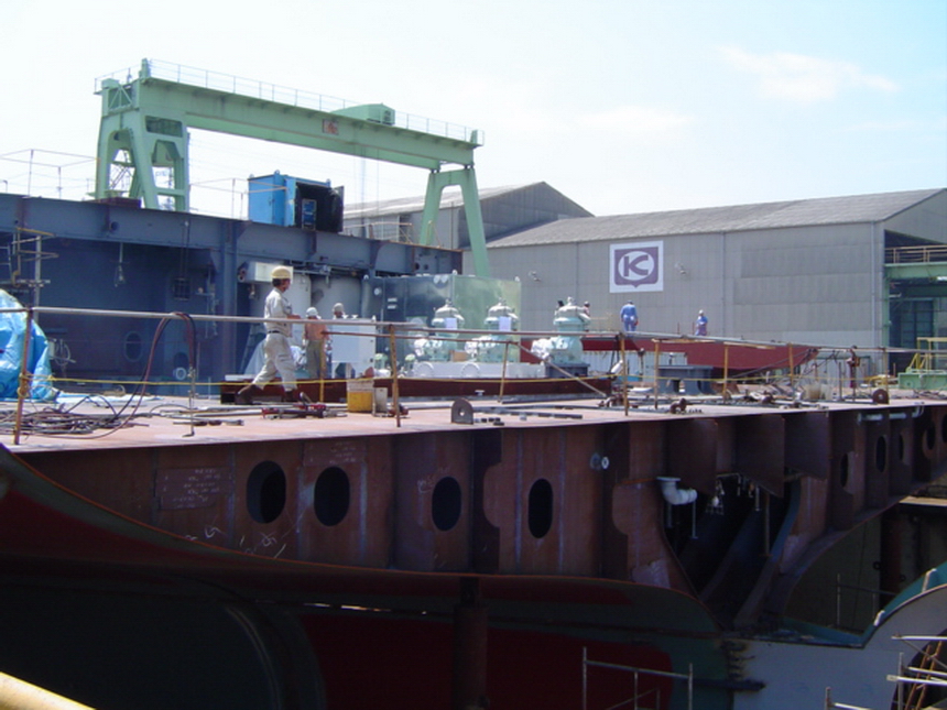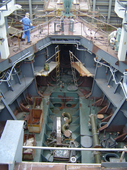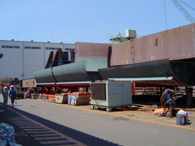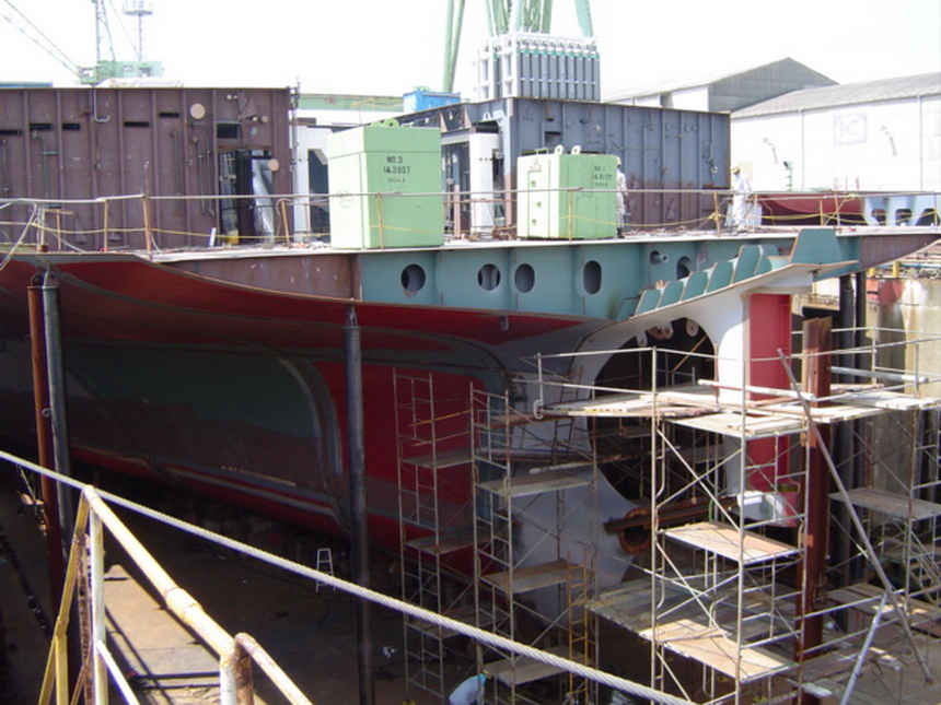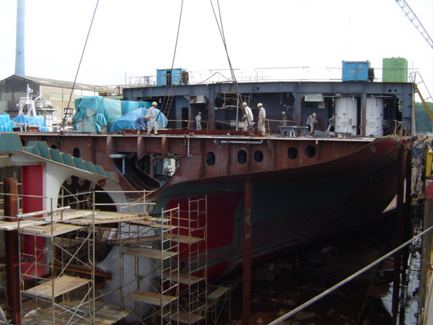 H 455 Typhoon No. 18 "Chaba" damage, dp back in dock again / H 455 Schadenfall durch Taifun Nr. 18 "Chaba" Status 21.09.2004. Doppelboden wieder im Dock