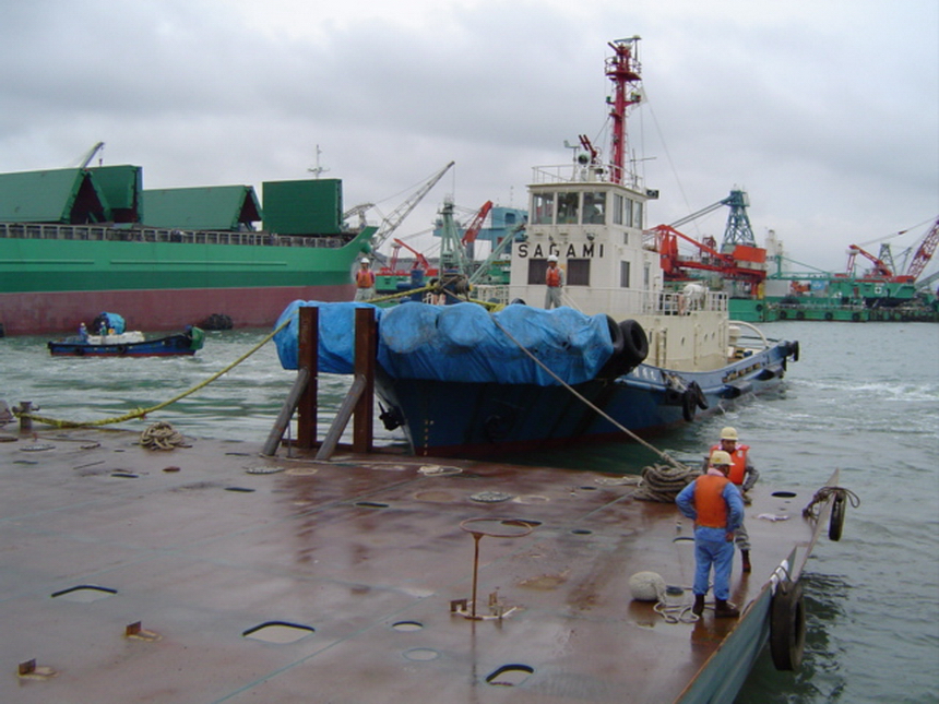 H 455 Typhoon No. 18 "Chaba" damage, moving out db / H 455 Schadenfall durch Taifun Nr. 18 "Chaba" Status 18.09.2004, aufschwimmen & verholen doppelboden