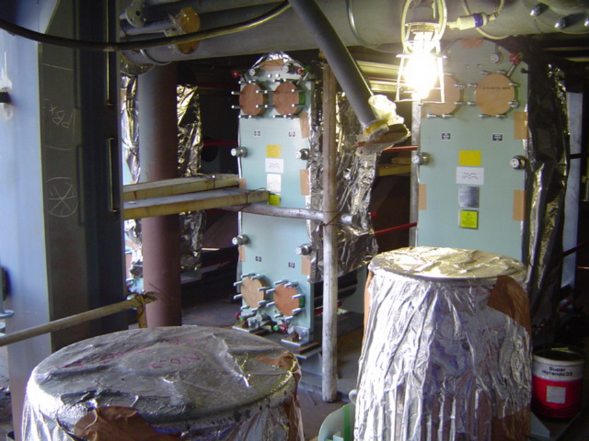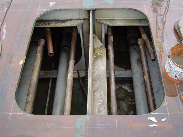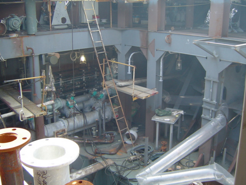 H 455 Typhoon No. 18 "Chaba" damage. Filling DP in Engine Room / H 455 Schadenfall durch Taifun Nr. 18 "Chaba" Status 28.09.2004. Maschinenraum Doppelboden Tank wird gefluttet