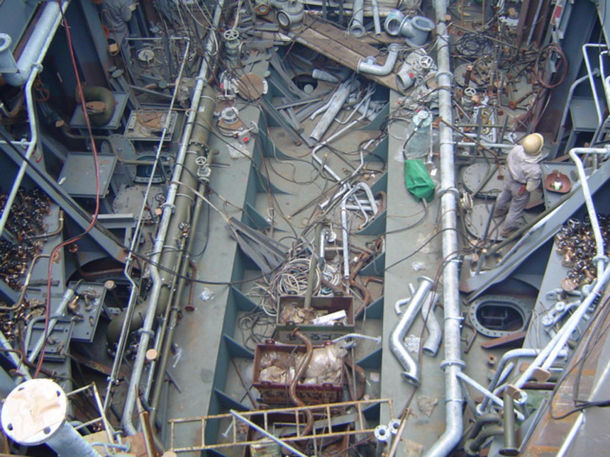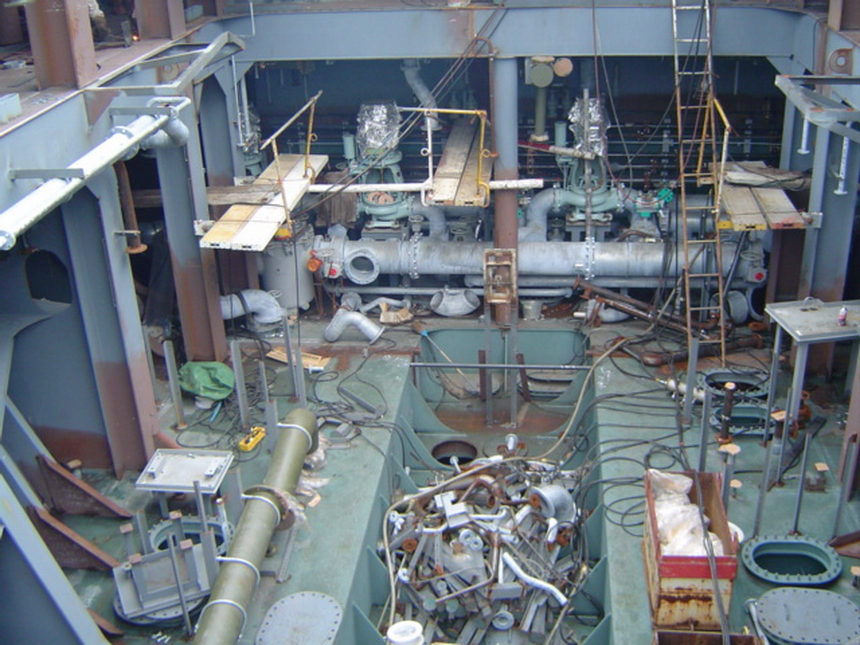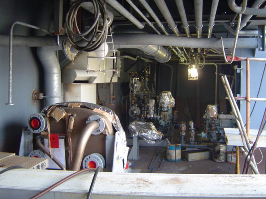 H 455 Typhoon No. 18 "Chaba" damage, arriving engine console / H 455 Schadenfall durch Taifun Nr. 18 "Chaba" Status 20.09.2004. Ankunft von Maschinenfahrstand