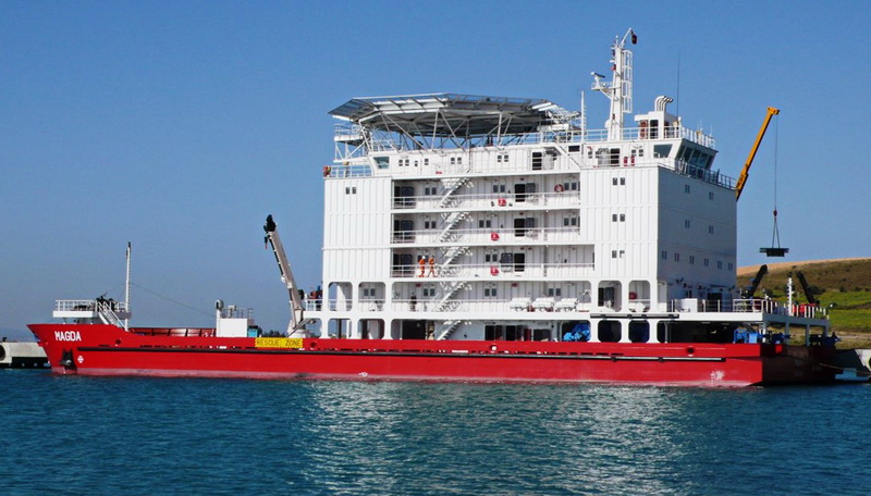 Il pontone MAGDA (Accomodation Barge-Hotel Barge) viene costruito preso il cantiere Gelibolu Shipyard S.A., Gelibolu, Turchia , con il numero di costruzione 042. È provvisto di propulsore proprio. È la terza costruzione di una serie di 3 unità (le prime due sono ELISA e RIO DEL REY). Il taglio delle prime lamiere avviene il 26-06-2008 ed il varo viene effettuato il 06-06-2009. La supervisione della costruzione avviene tramite esperti della ABC Maritime. Il pontone viene battezzato MAGDA, ed il 30-07-2009 messo sotto bandiera di St.VinBcent and The Grenadines (IMO nr.: 9480693, numero matricola: 10632, nominative internazionale: J8B4159). Il supporto commerciale e tecnico lo svolge la ABC Maritime, Nyon. Il 10-08-2009, il pontone parte dal cantiere, da dove intraprende il viaggio per Douala, Kamerun. Sosta per breve tempo a Gibilterra. Le dimensioni sono le seguenti: Lunghezza: 70 m, larghezza 20 m, altezza 4,3 m, pescaggio a pieno carico 2,3 m. Disloca 2162 tonn., e la portata è di 866 tonn. Una piattaforma per elicotteri ed alloggi più grandi distinguono il pontone dall’altro pontone nominato ELISA. Equippaggiato con un propulsore Diesel-Ellettrico, il quale aziona 2 eliche azimutali, installate a poppa (eliche orientabili, rendono superfluo il sistema di governo tradizionale, macchina del timone e timone), costruite dalla Schottel, Germania, con una Potenza di 525 kW ciascuna. Un’elica di manovra da 270 kW supporta le manovre. Quattro generatori Diesel, costruiti dalla Moteurs Bauduoin, Marsiglia, tipo M26SR, producono la necessaria alimentazione ellettrica (A.C. 3 fasi, 400/230V,50Hz) per i motori di propulsione ed i servizi ausiliari come anche per gli impianti necessari del servizio alberghiero. Ogni gruppo ha una capacità di 571kW. Il pontone è provvisto di un sistema di ancoraggio “8-point mooring”, cioè, sono installate 2 ancore Flipper-Delta, accoppiate ad un cavo d’acciao da 38mm, a prua ed a poppa, a dritta e sinistra. I cavi hanno una lunghezza di 1600m ed un peso di 9 tonn. Una gru da 10 tonn. è installata a dritta sul ponte di lavoro. Gli alloggi sono predisposti per 132 persone, incluso l’equipaggio (Marine Crew) ed il personale alberghiero. Il personale per il reparto marittimo (Marine Crew) è composto da 12 persone, a secondo le esigenze a bordo. Il 14-09-2009, dopo l’arrivo a Douala ed una breve rimanenza nel porto per i preparative per la messa in servizio, il pontone perte verso i pozzi petroliferi antistante la costa del Kamerun, dove poi svolge il suo servizio. Il pontone MAGDA (Accomodation Barge-Hotel Barge) viene costruito preso il cantiere Gelibolu Shipyard S.A., Gelibolu, Turchia , con il numero di costruzione 042. È provvisto di propulsore proprio. È la terza costruzione di una serie di 3 unità (le prime due sono ELISA e RIO DEL REY). Il taglio delle prime lamiere avviene il 26-06-2008 ed il varo viene effettuato il 06-06-2009. La supervisione della costruzione avviene tramite esperti della ABC Maritime. Il pontone viene battezzato MAGDA, ed il 30-07-2009 messo sotto bandiera di St.VinBcent and The Grenadines (IMO nr.: 9480693, numero matricola: 10632, nominative internazionale: J8B4159). Il supporto commerciale e tecnico lo svolge la ABC Maritime, Nyon. Il 10-08-2009, il pontone parte dal cantiere, da dove intraprende il viaggio per Douala, Kamerun. Sosta per breve tempo a Gibilterra. Le dimensioni sono le seguenti: Lunghezza: 70 m, larghezza 20 m, altezza 4,3 m, pescaggio a pieno carico 2,3 m. Disloca 2162 tonn., e la portata è di 866 tonn. Una piattaforma per elicotteri ed alloggi più grandi distinguono il pontone dall’altro pontone nominato ELISA. Equippaggiato con un propulsore Diesel-Ellettrico, il quale aziona 2 eliche azimutali, installate a poppa (eliche orientabili, rendono superfluo il sistema di governo tradizionale, macchina del timone e timone), costruite dalla Schottel, Germania, con una Potenza di 525 kW ciascuna. Un’elica di manovra da 270 kW supporta le manovre. Quattro generatori Diesel, costruiti dalla Moteurs Bauduoin, Marsiglia, tipo M26SR, producono la necessaria alimentazione ellettrica (A.C. 3 fasi, 400/230V,50Hz) per i motori di propulsione ed i servizi ausiliari come anche per gli impianti necessari del servizio alberghiero. Ogni gruppo ha una capacità di 571kW. Il pontone è provvisto di un sistema di ancoraggio “8-point mooring”, cioè, sono installate 2 ancore Flipper-Delta, accoppiate ad un cavo d’acciao da 38mm, a prua ed a poppa, a dritta e sinistra. I cavi hanno una lunghezza di 1600m ed un peso di 9 tonn. Una gru da 10 tonn. è installata a dritta sul ponte di lavoro. Gli alloggi sono predisposti per 132 persone, incluso l’equipaggio (Marine Crew) ed il personale alberghiero. Il personale per il reparto marittimo (Marine Crew) è composto da 12 persone, a secondo le esigenze a bordo. Il 14-09-2009, dopo l’arrivo a Douala ed una breve rimanenza nel porto per i preparative per la messa in servizio, il pontone perte verso i pozzi petroliferi antistante la costa del Kamerun, dove poi svolge il suo servizio. Il 13-08-2020 messa sotto bandiera delle Isole Marshall. Nominativo internazionale: V7A4267, MMSI: 538009066. Il 11-09-2025 passa alla Dermor Inc. Co, Kingstown – St Vincent and the Grenadines e rinominata SIRONA. Nominativo internazionale: J8B6652, MMSI: 37588000. La gestione commerciale e tecnica ora la svolge la Dixstone Netherlands NV, Hoofdrop. Fonti: