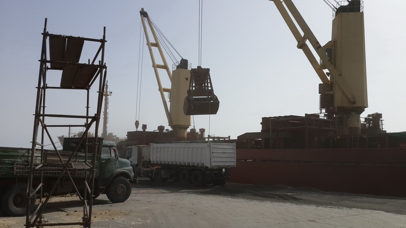 Löschen (Entladen) von Zementklinker in Nouakchott, Mauretanien / Discharging cement clinker at Nouakchott, Mauritania