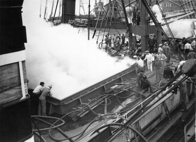 Feuer in der Copraladung am 21.08.1943 in Lissabon / Copra cargo fire at Lisbon on August 21, 1943