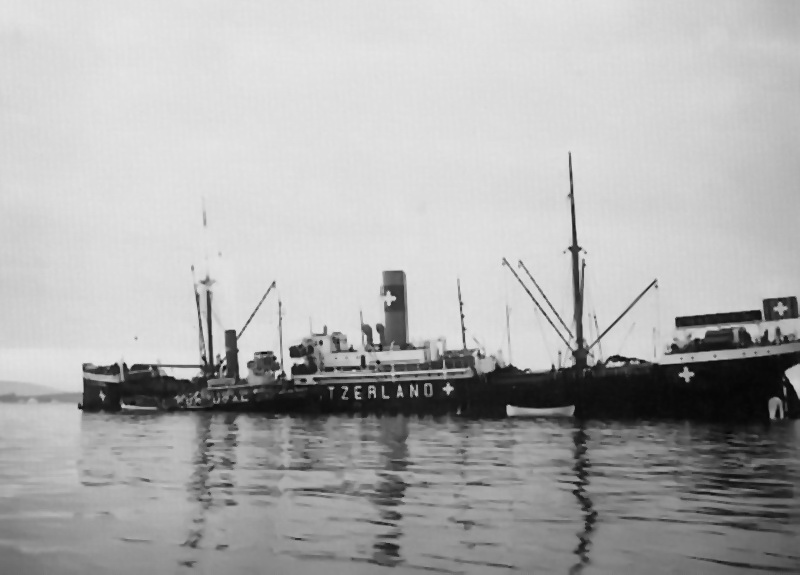 Schweizer Pressebericht vom 26. April 1944 über den britischen Luftangriff vor Sété auf die CHASSERAL. Das Foto jedoch zeigt den Dampfer in Lissabon als in der Copraladung ein Brand entstand am 21.08.1943 / Swiss press report from 26 April 1944 on the British air raid on the CHASSERAL off Sété. However, the photo shows the steamer in Lisbon when a fire broke out in the copra cargo on 21 August 1943