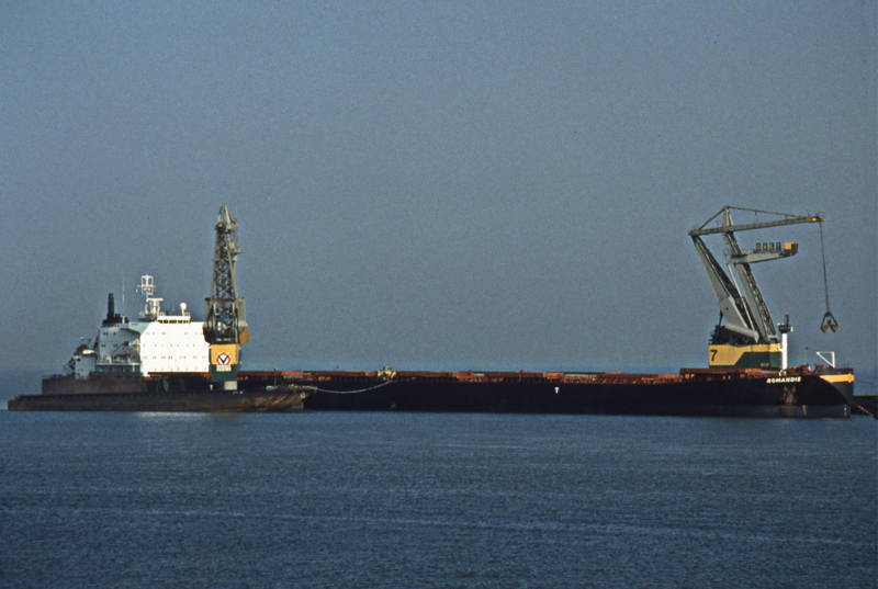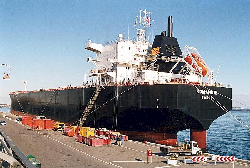 Auf der Westerschelde Reede bei Everingen beim leichtern durch die Firma OVET = Overslagbedrijf Terneuzen (Transshipment Company Terneuzen) / On the Westerscheldt roads near Everingen during lightering by OVET = Overslagbedrijf Terneuzen (Transshipment Company Terneuzen)