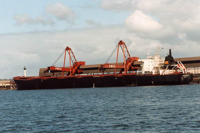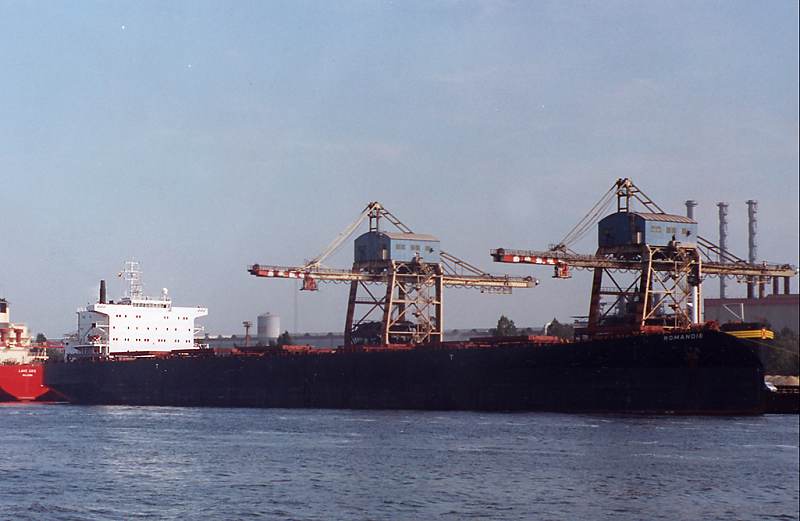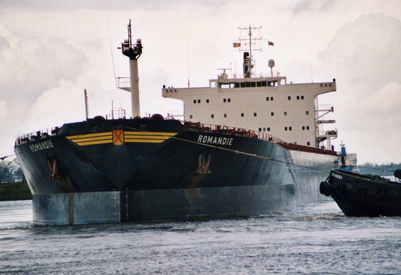 The M/V ROMANDIE, a Mark V bulk carrier of the Panamax Class, was keel laid on 15.04.1994 and launched on July 10th 1994 in Copenhagen at the Burmeister & Wain shipyard (History of the shipyard: Formerly Burmeister & Wain's Skibsbyggeri A/S, previously Burmeister & Wain's Maskin- og Skibsbyggeri A/S, formerly Baumgarten & Burmeister, originally Hans Heinrich Baumgarten), and handed over to her owners, Helica S.A. of Geneva, on October 18th 1994. The naming ceremony took place in Copenhagen on September 19th 1994 at the same time as that of her sister ship the M/V "Silvretta". The ROMANDIE set out for her maiden voyage to New Orleans on October 18th 1994. The ship is managed by Suisse-Atlantique, Société de navigation maritime S.A., of Lausanne. A striking feature is the absence of a bulbous bow. The main engine is a New Sulzer 5 RTA 62U, with an output of 14’700 hp or 10’812 kW. Callsign: HBDU. The construction cost for the ship at that time was 30 million US dollars. Sold on 31.01.2001 in Los Angeles to Oceana Shipping A.G., Chur (Management: Suisse-Atlantique Société de Navigation Maritime S.A., Lausanne), Basel. Not renamed. 30. July 2001: Sold in Kohsichang / Thailand to Atlant Adria Corporation, Nassau, Bahamas (Management: Atlantska Plovidba d.d., Dubrovnik), Dubrovnik, and renamed PETKA. Official No.: 7T-382, Call sign: 9ANB. January 2004 transferred to Atlant Bulkers Corp. (Management and flag unchanged). September 2007 transferred to Atlant Panamax Corp. (Management and flag unchanged). October 2007 transferred to Atlant Adria Corp. (Management and flag unchanged). January 2008 transferred to Atlantic Conbulk Maritime. (Management and flag unchanged). May 2012 sold for about $9,500,000 to JITF Shipping & Logistics (Singapore) Pte. Ltd., Singapore (Panama flag) (Management: Orient Express Ship Management Ltd., Mumbai) and renamed JINDAL VARAD. Official No.: 43373PEXT, Call sign: 3FLK3. Purchased on 21 November 2014 by Priyanka Shipping Ltd (Scope Maritime Pvt Ltd), Mumbai, and registered under the flag of St. Kitts and Nevis in Basseterre with the call sign V4ES3. New name DAL VA. The Shipmanagement was transferred to Royal Marine Shipmanagement Pte Ltd in Singapore. Beached at Gadani Beach on 25 January 2015 for scrapping. Jamaluddin & Co began demolition work on 27 January. Sources: