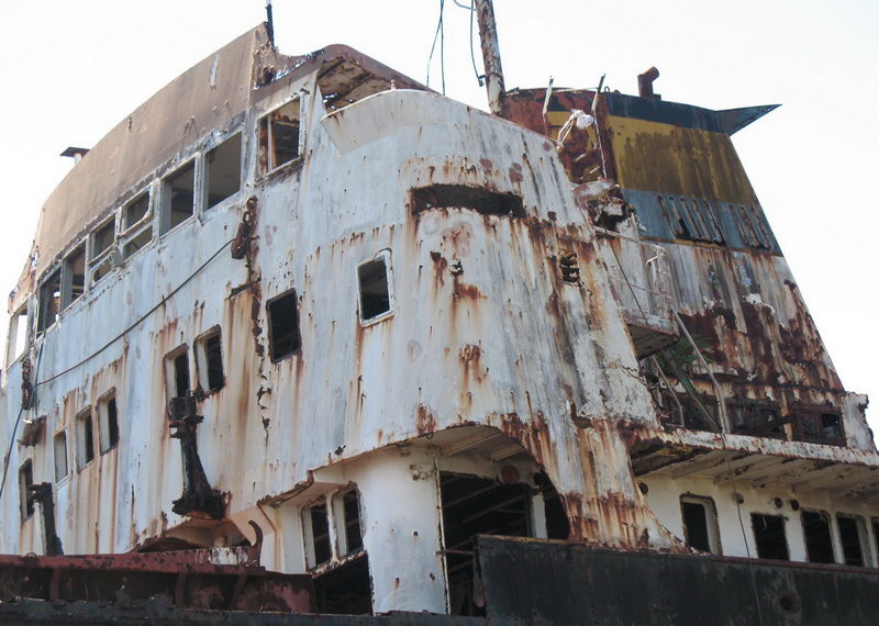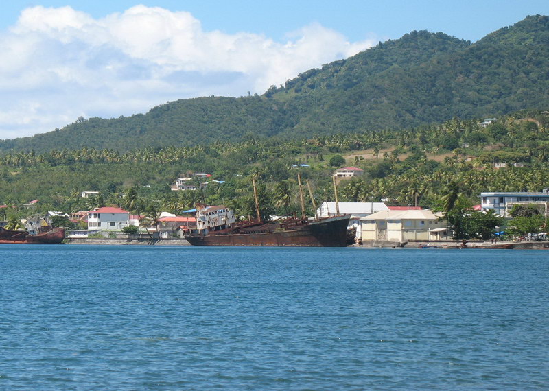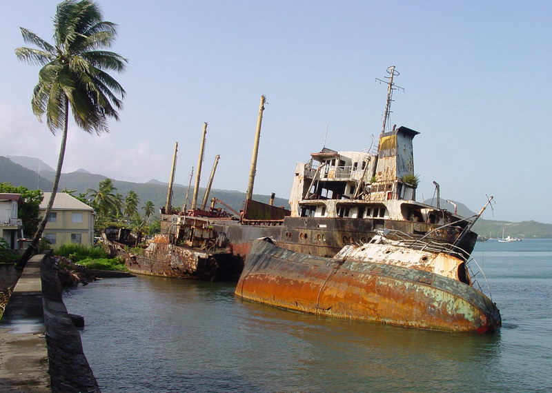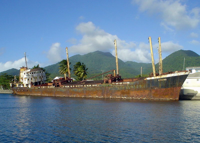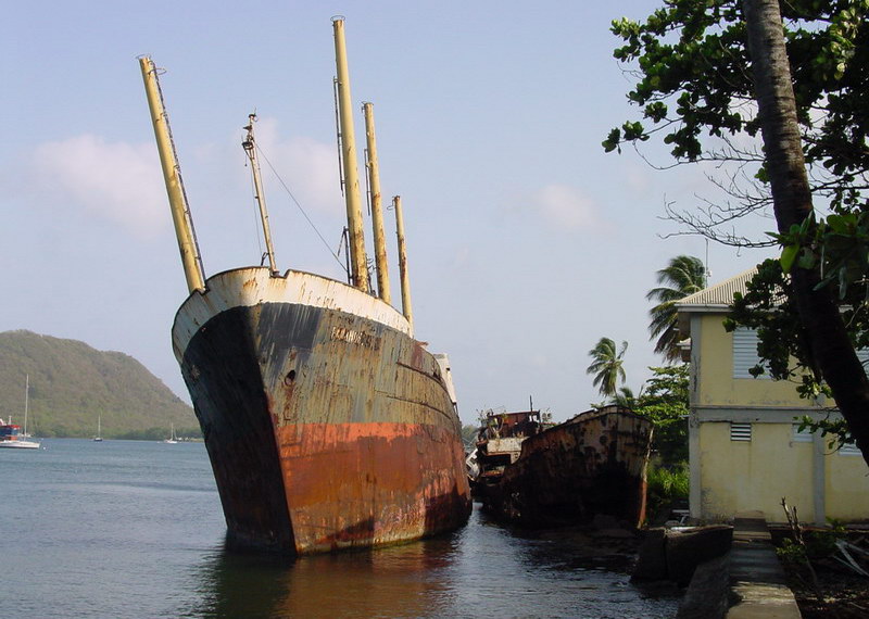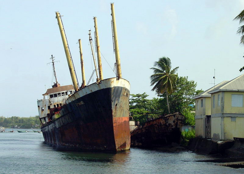 Ca. 1995 durch einen Hurrikan auf den Strand von Portsmouth auf der Insel Dominica getrieben / Approximately 1995 driven by a hurricane on the beach of Portsmouth on the island of Dominica in the Carribbean